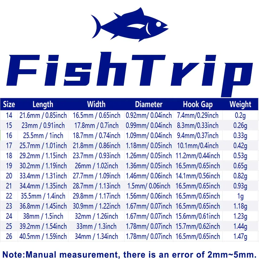 13 different sizes (14# to #26) to suit your multiple fishing applications that ensure the pleasure of fishing continue! Suitable for bass, walleye,trout, salmon, sunfish, channel catfish, blue catfish, and flathead catfish.