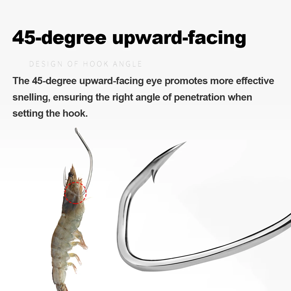 The 45-degree upward-facing eye promotes more effective snelling, ensuring the right angle of penetration when setting the hook.