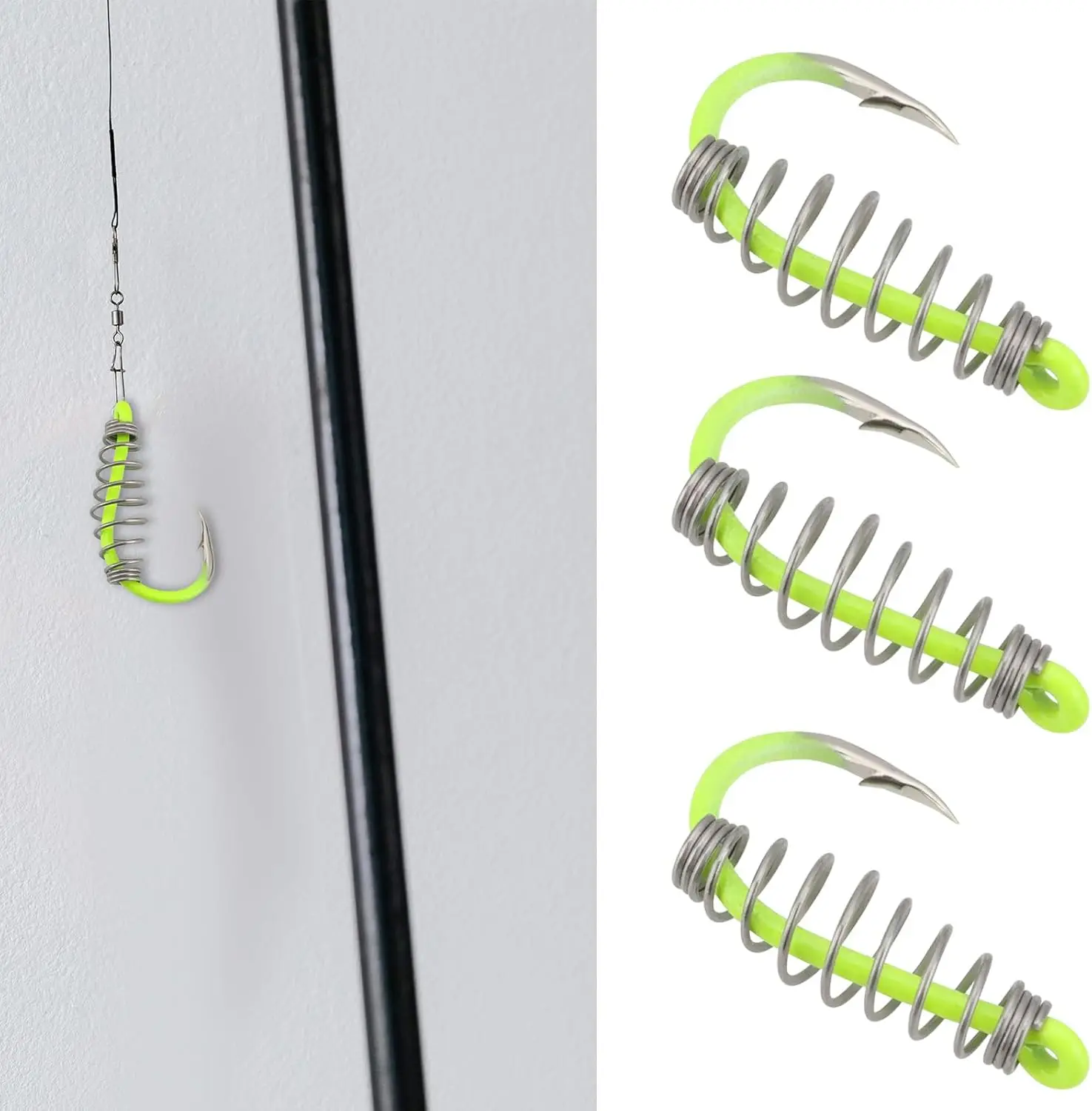 FishTrip Fishing Spring Hook 20-80pcs Fluorescent Green Hook Carp Hook Bait Hook Extra Strong Fishing Circle Hook for Freshwater