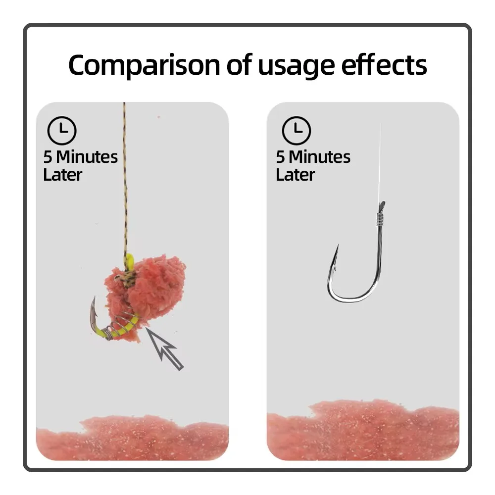 Small spring prevents nugget, paste, dough and other soft baits from flying off.