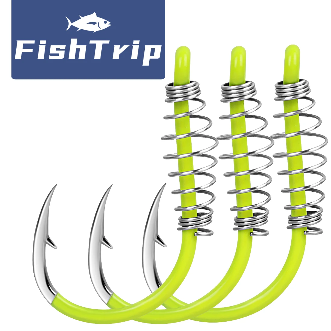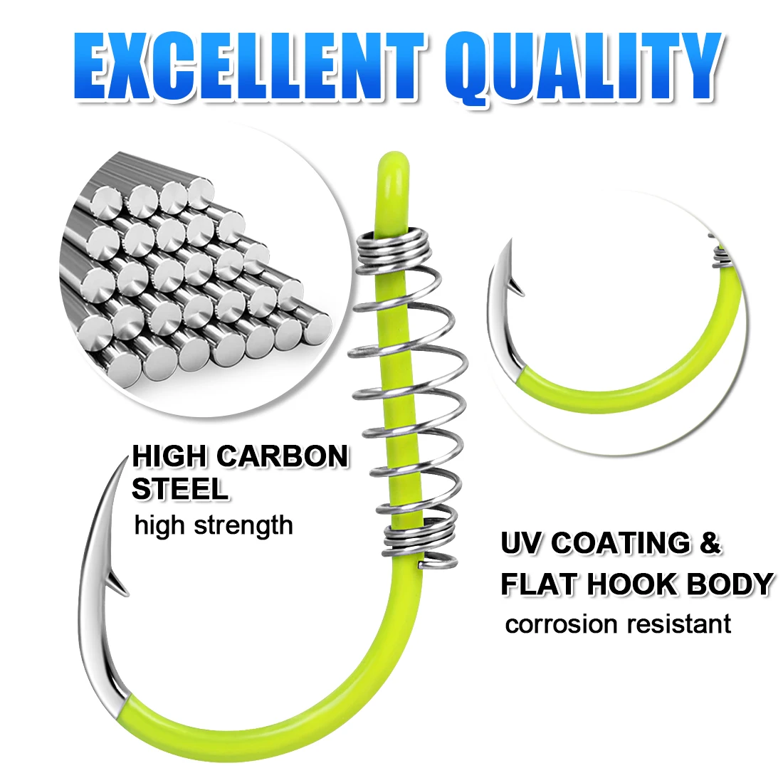 FishTrip Fishing Spring Hook 20-80pcs Fluorescent Green Hook Carp Hook Bait Hook Extra Strong Fishing Circle Hook for Freshwater