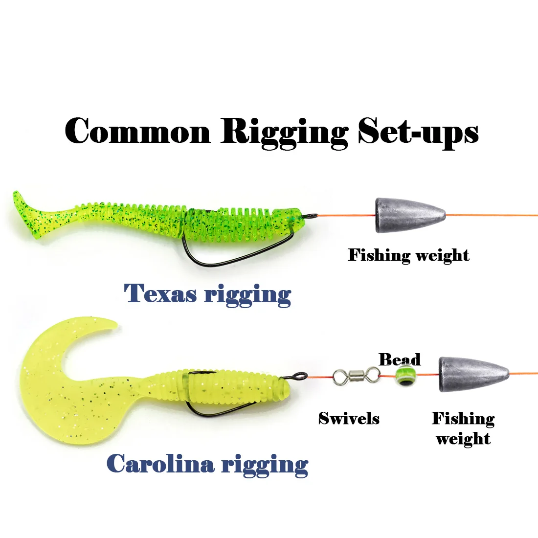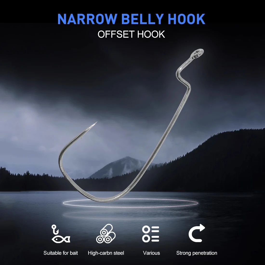 El espacio adicional entre el vástago y el punto del gancho permite que los cebos más grandes se colapsen más fácilmente, lo que aumenta la penetración del gancho. Si recibe muchas mordeduras con otros ganchos pero tiene problemas para engancharse con plásticos más gruesos, este estilo de gancho probablemente remediará el problema.