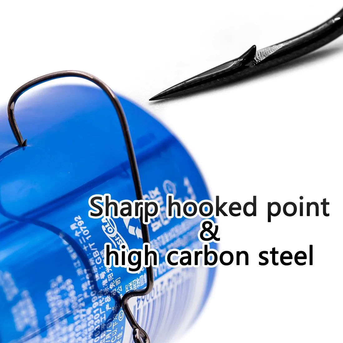Los ganchos EWG de 9KM tienen una curva más amplia y agresiva que los ganchos compensados de curva redonda estándar, lo que los convierte en una opción ideal para cebos de plástico blando más voluminosos.