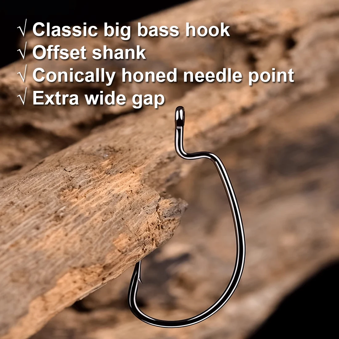Es una opción ideal para una amplia gama de grandes señuelos de plástico blando como sábalos, gusanos o cebos de natación. Este anzuelo es perfecto para pescar alrededor de coberturas pesadas que apuntan a una amplia variedad de especies, como lubina, perca, trucha marrón, trucha arcoíris, lucioperca, Lucio o lucioperca.