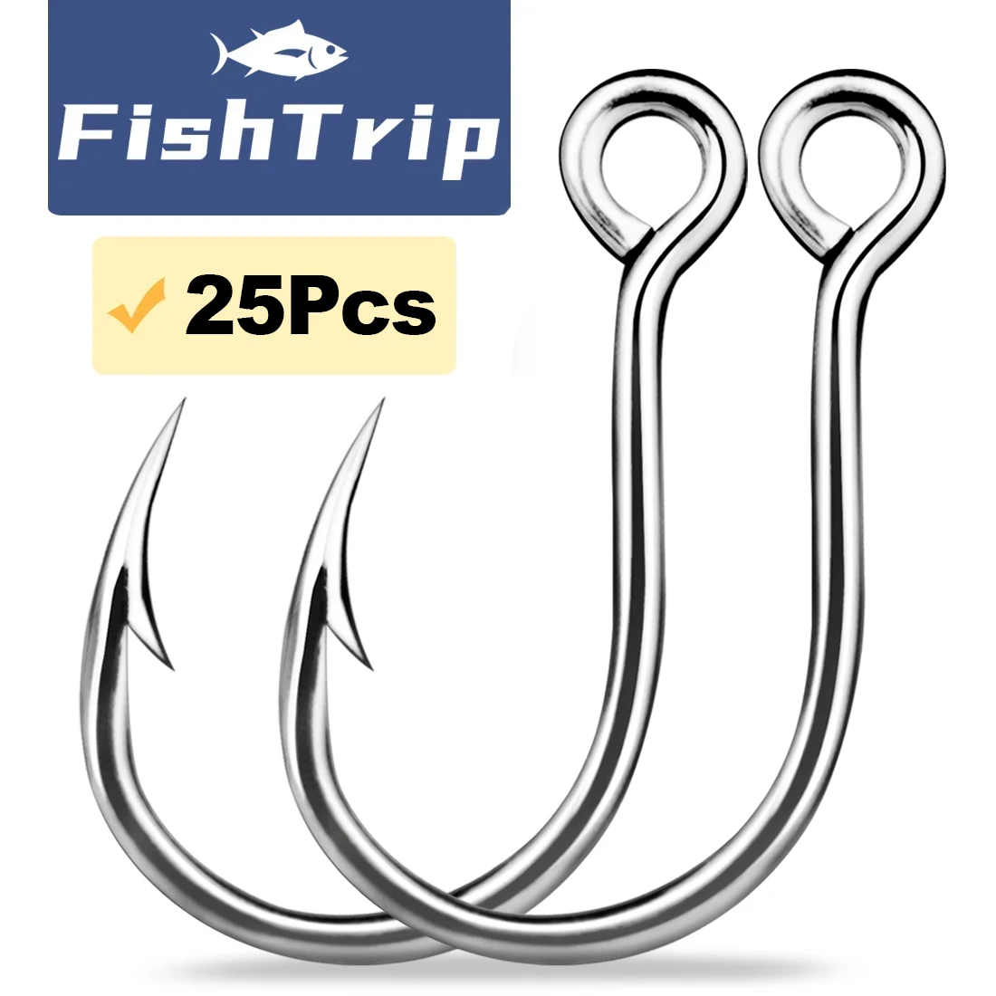 El anzuelo único FishTrip presenta una increíble relación de fuerza y potencia. Curva extra ancha para ganchos más seguros cuando se dirigen a especies de agua salada grandes, fuertes y rápidas, como el atún gigante Trevally, Yellowfin o Dogtooth.