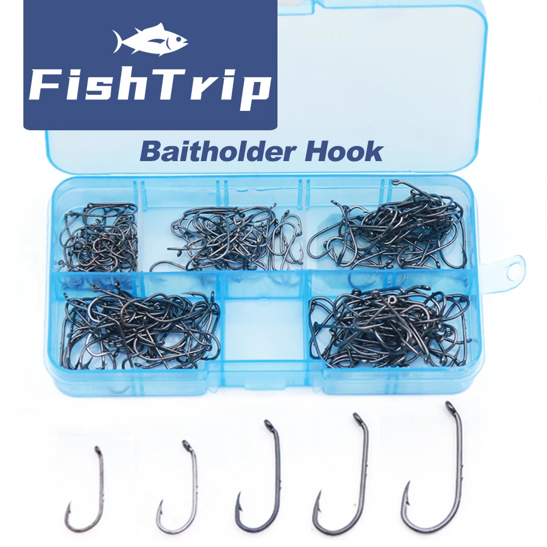 Baitholder hooks have a short shank, making them easy to hide. They also feature barbs on the upper half of the back shank, for a secure hold. The hook gets disguised when fully rigged with natural bait like worms, minnows, cut bait, or corn.