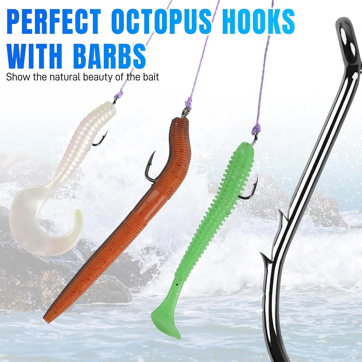 FishTrip Octopus Baitholder Anzuelos de pesca 2X Anzuelos de pico con púas afiladas Acero con alto contenido de carbono Ojo cerrado extra afilado para agua salada