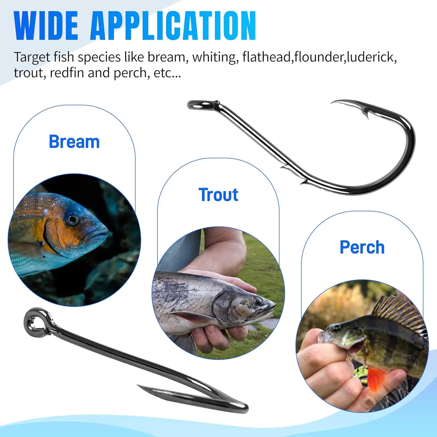 Los ganchos circulares + el punto de desplazamiento guían el gancho hacia el borde de la boca (no tramos), lo que reduce las lesiones por captura y liberación. Enganche a los peces pasivamente mientras protege las poblaciones: una opción ecológica para lubina, trucha y gallis.