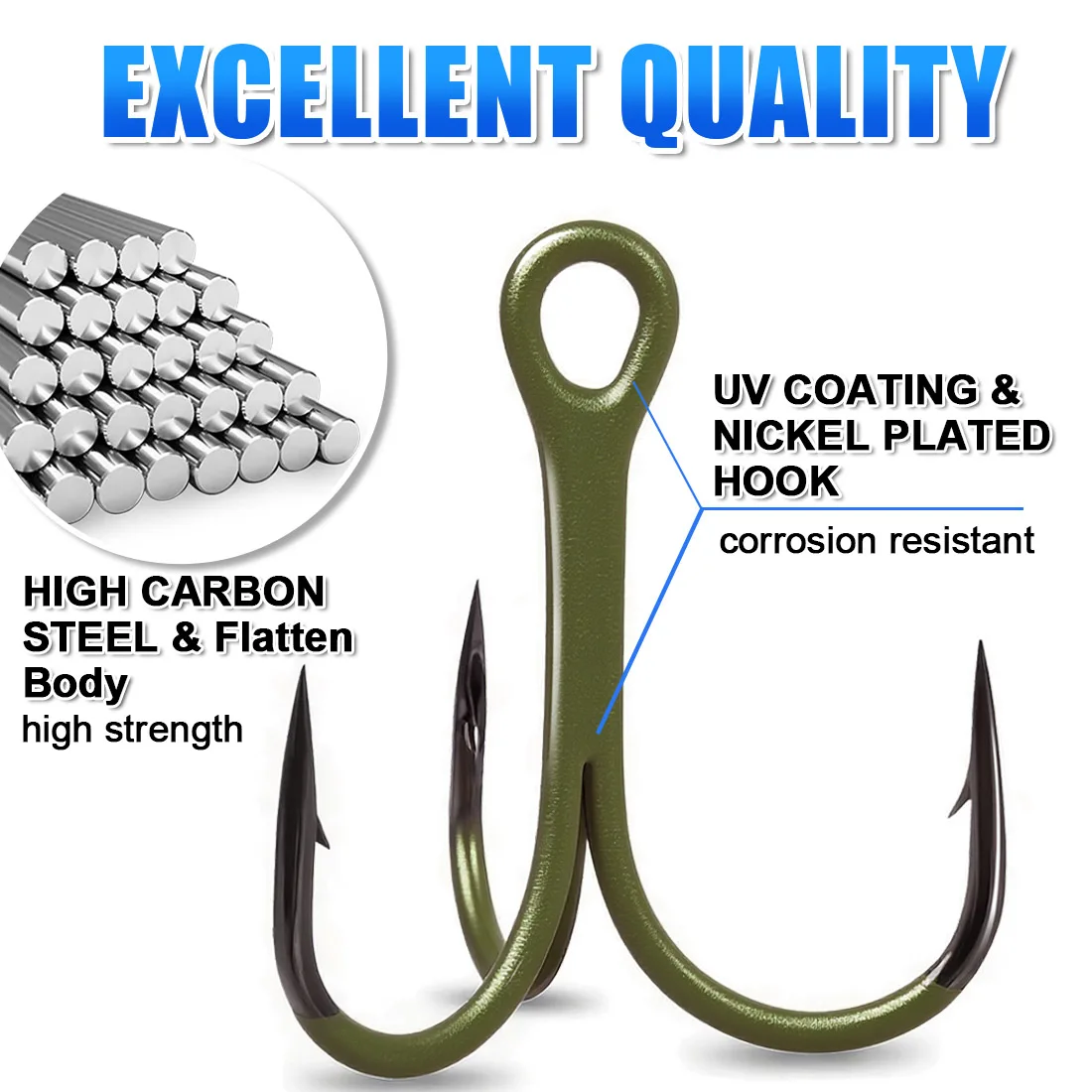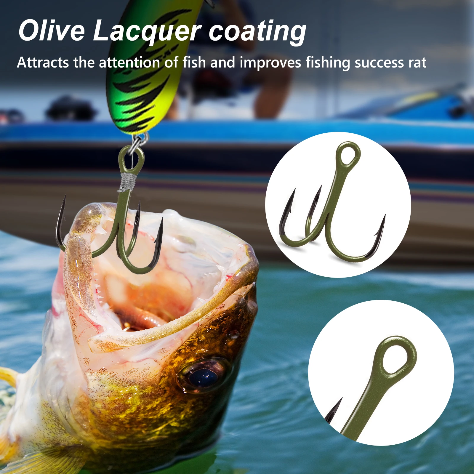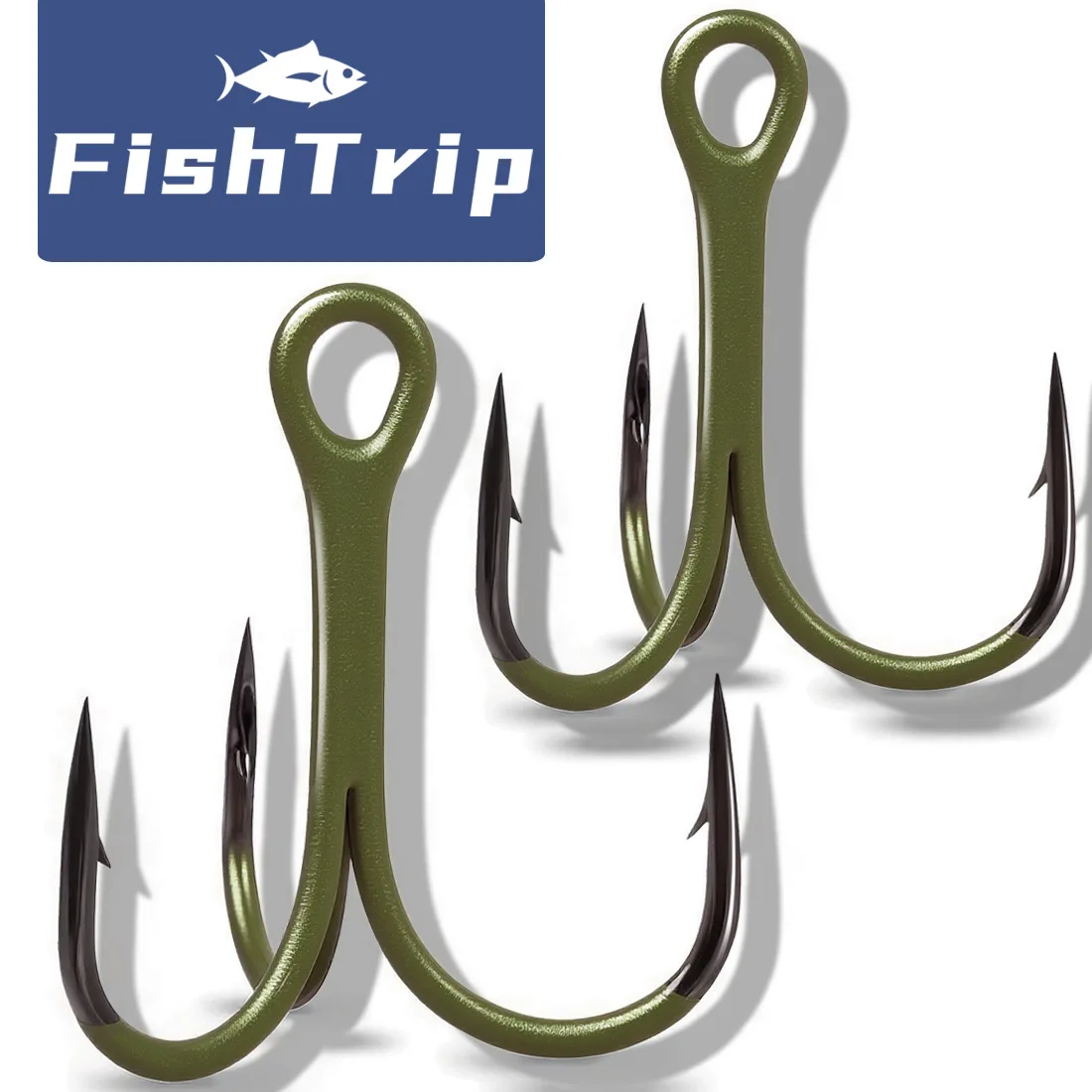 FishTrip anzuelo triple 10 Uds revestimiento UV aceituna curva redonda señuelo anzuelo de pesca acero alto carbono agua salada lubina ganchos anticorrosión