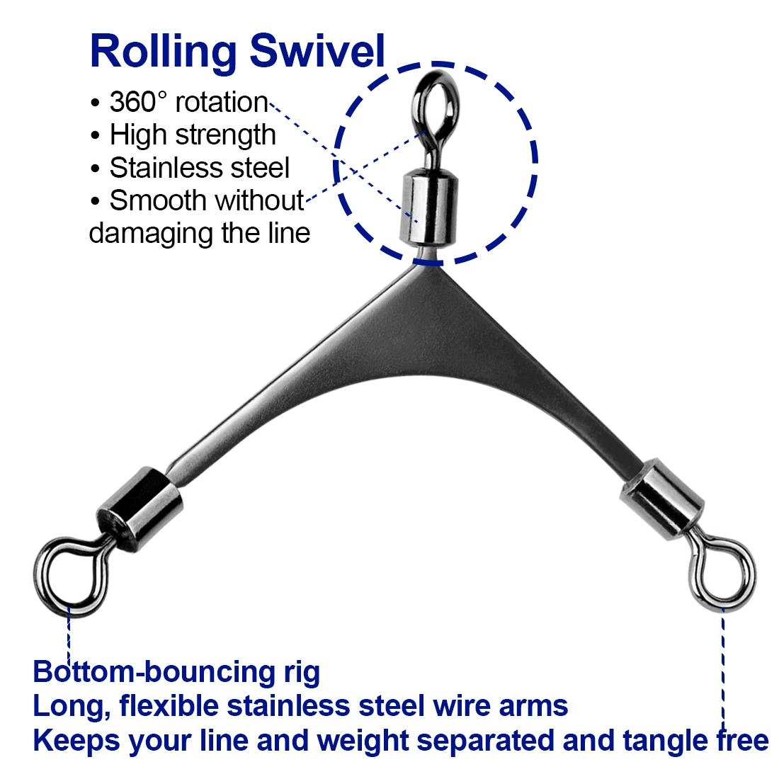 Los largos brazos de alambre de acero inoxidable tienen la cantidad justa de flexibilidad para trabajar las cuchillas y dar a sus cebos la acción necesaria para forzar los golpes en aguas abiertas. Fabricado con componentes de calidad.