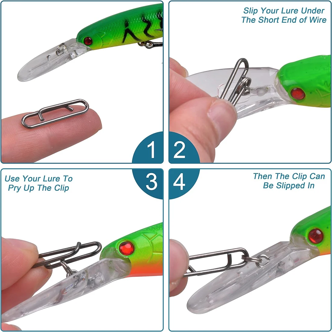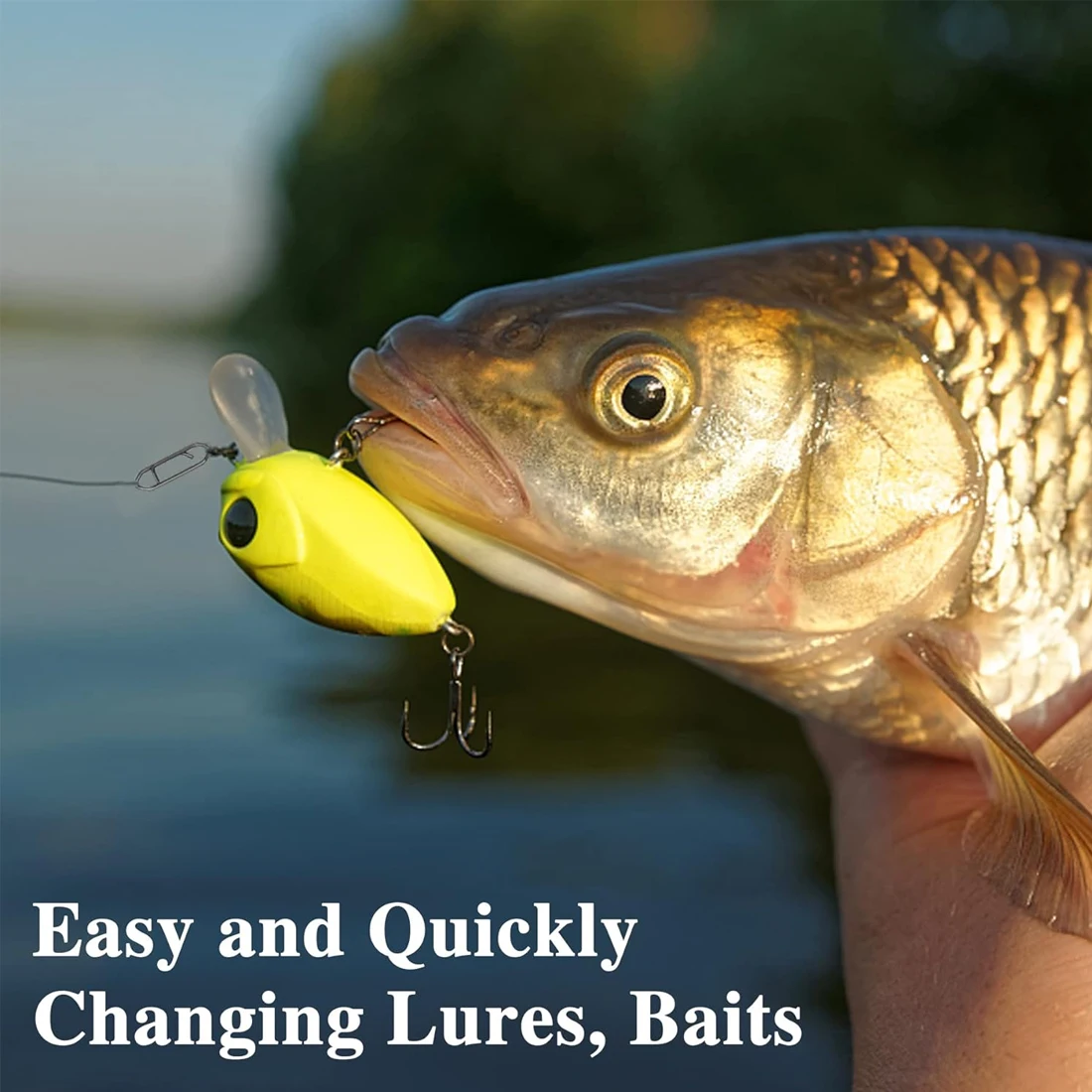 Utilice Snaps rápidos de acero inoxidable para fijar de forma rápida y segura señuelos o aparejos preatados.Funcionan muy bien en lugar de giratorios y broches de bloqueo, y también se pueden usar con giratorios.
