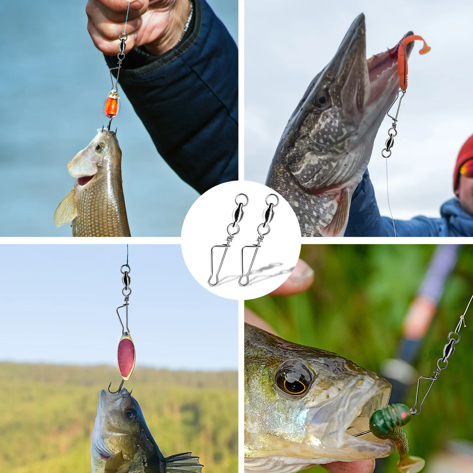 Nuestros giratorios de pesca se pueden usar con crankbait, plug, swimbait, pececillo, popper, spinnerbait, plantilla de pesca de metal, etc. 11 tamaños son adecuados para una variedad de escenarios de pesca, como pesca en agua salada, pesca en agua dulce, pesca en tierra, pesca en mar, etc.