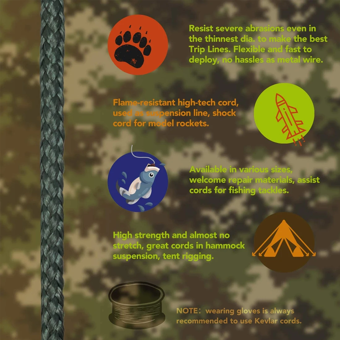 Línea de pesca con cordón de Kevlar trenzado FishTrip, resistencia a la abrasión para sierra, modelo Rocket, lona de hamaca Ridgeline, supervivencia táctica