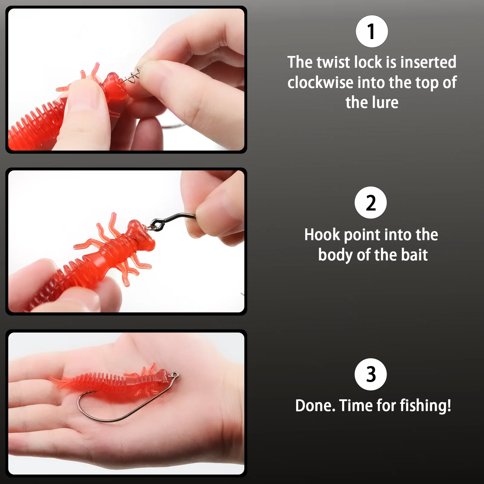 Los ganchos Twistlock son perfectos para aparejos sin malezas de plásticos más grandes como baquetas grandes, tubos y cebos para creaturas.