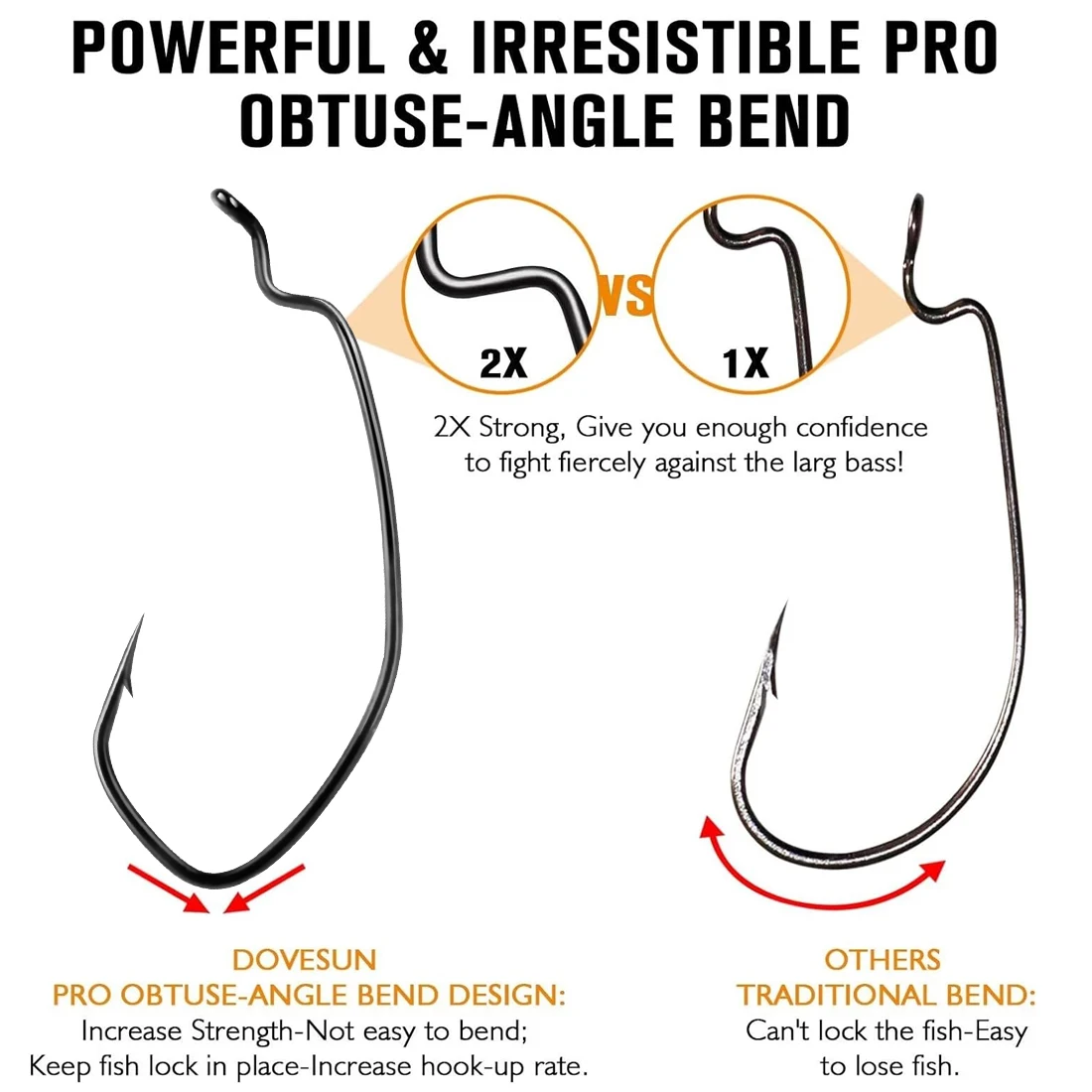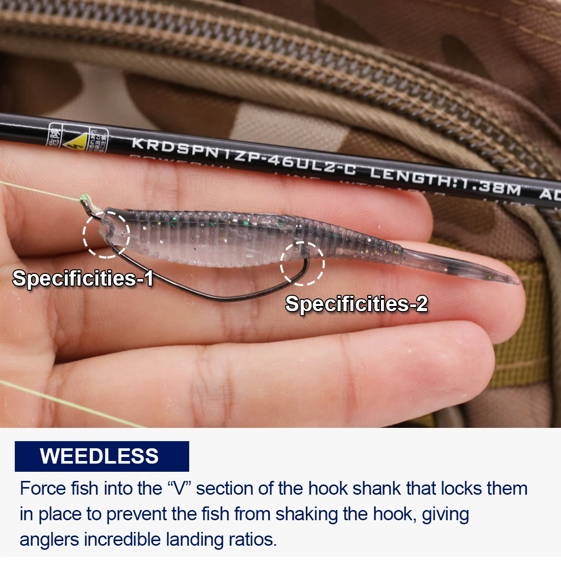 ¡Los mejores receptores de bajos! El anzuelo de gusano compensado se adapta a diversos escenarios de pesca, como arbustos, lechos, muelles, lechos de hierba, bancos, es ideal para deslizarse a través de obstáculos para obtener sus cebos donde otros no pueden, ofreciéndote versatilidad y desafíos. ¡No encontrarás mejores anzuelos para poner un aparejo de Texas, un aparejo de Carolina o cualquier otro aparejo de pesca de lubina!