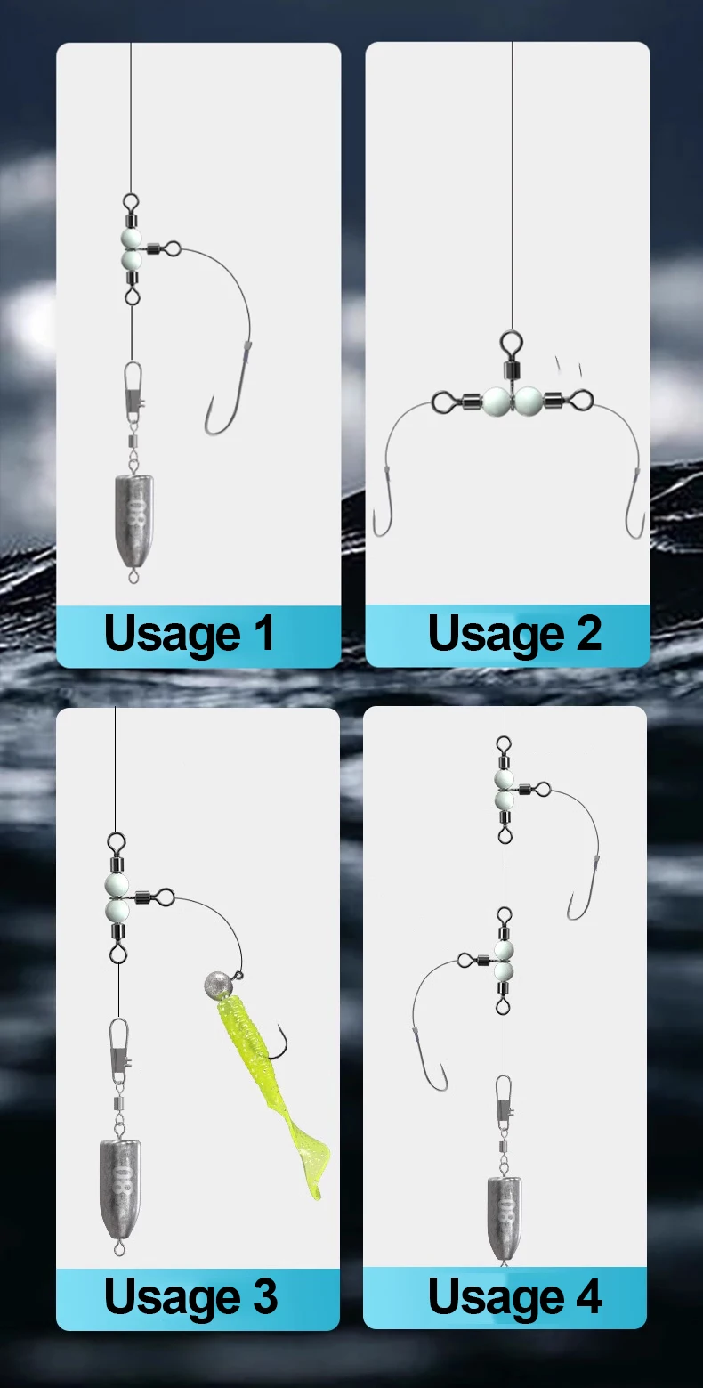 Perfecto para perseguir comederos inferiores, el giratorio en T resistente con cuentas brillantes ofrece la durabilidad que necesita para combatir con abitanientes inferiores monstruosos.Las cuentas luminosas integradas añaden un poco de atracción adicional en aguas oscuras o turbias.