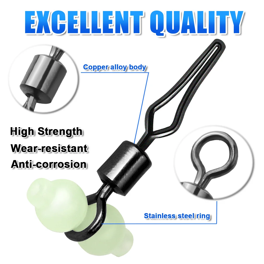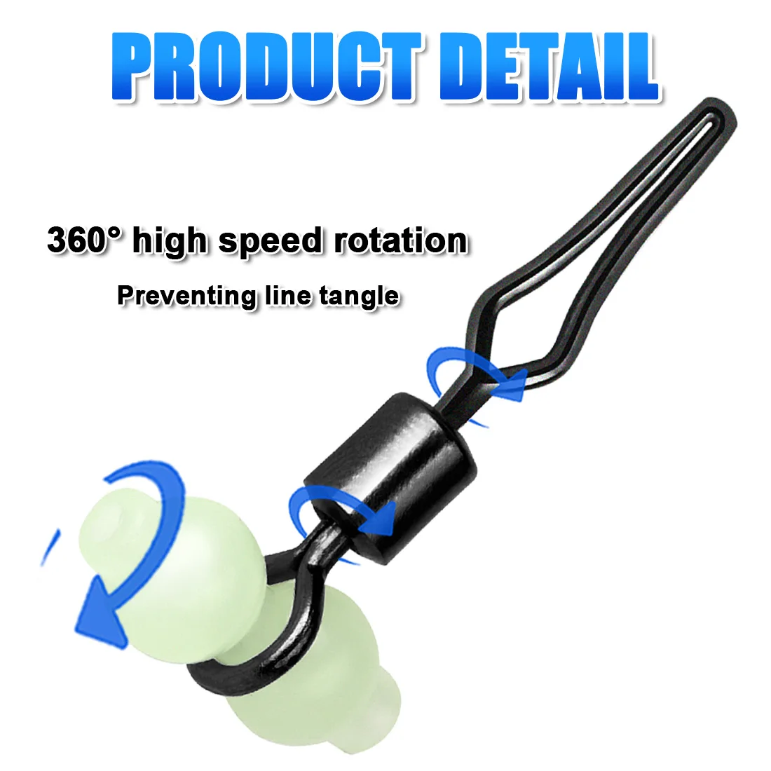Con diseño de cuentas luminosas, pueden brillar en la oscuridad o en condiciones de agua de baja visibilidad.La exposición al sol o a una luz intensa antes de su uso hace que los giratorios de 3 vías se iluminen automáticamente en lugares oscuros.