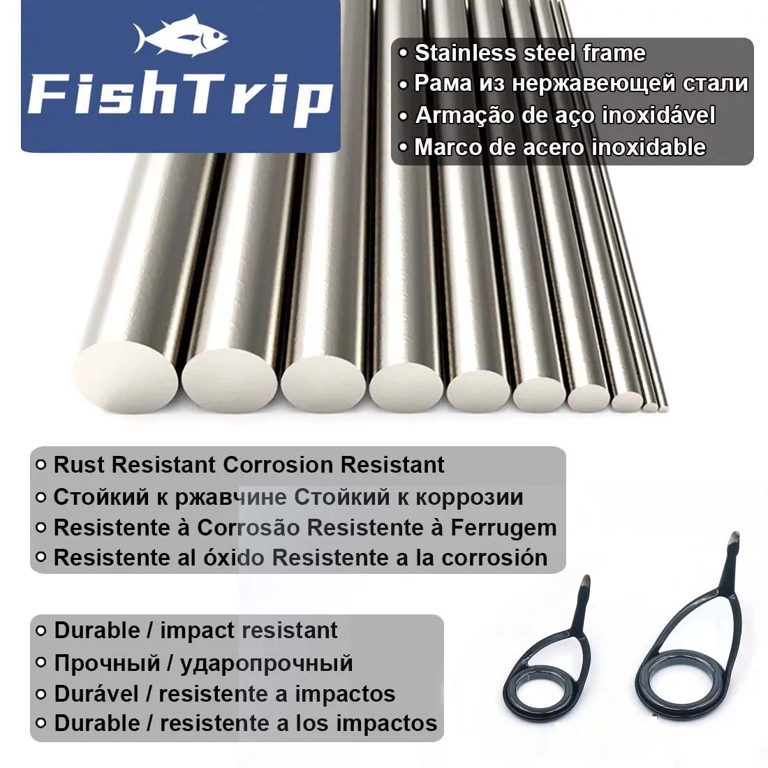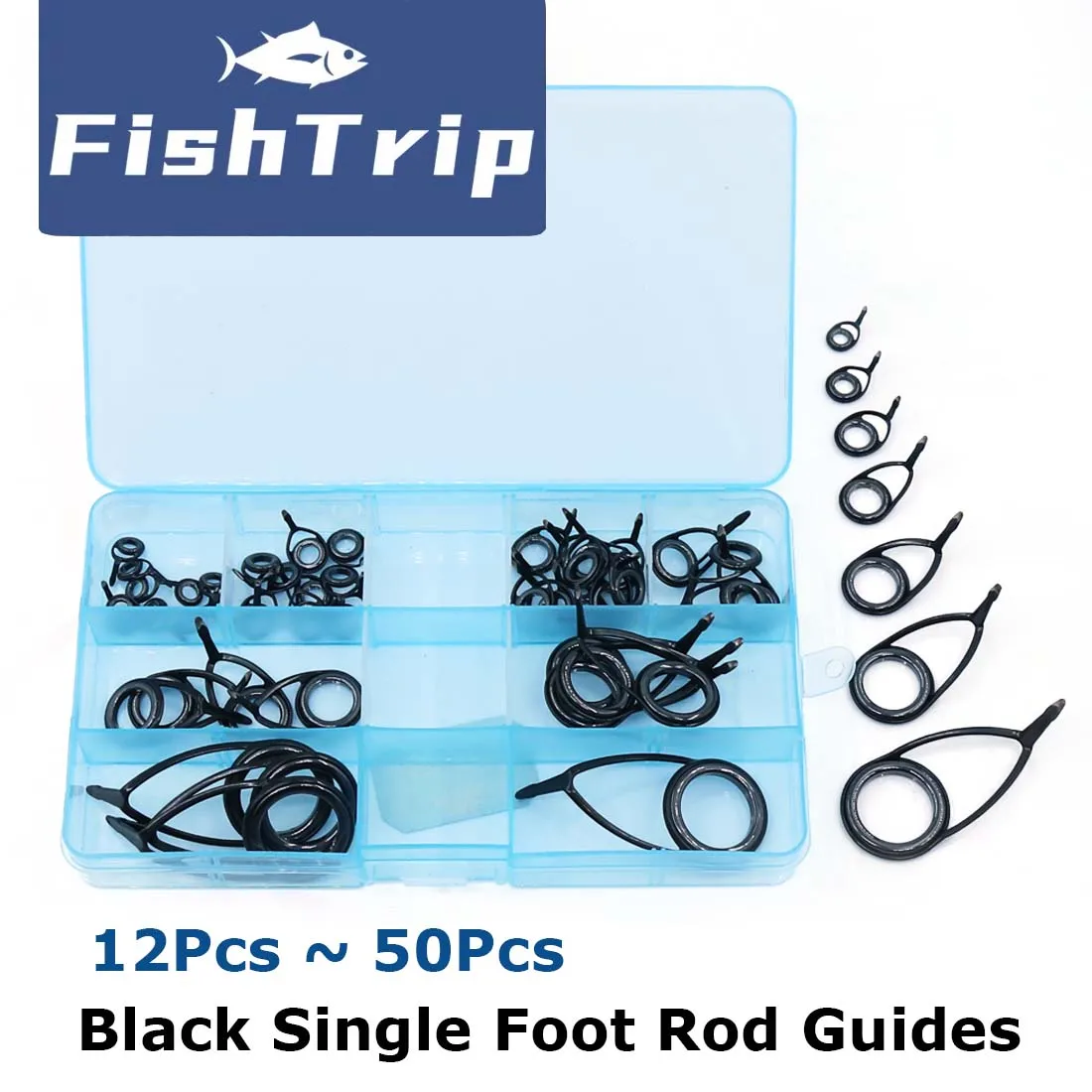 FishTrip 12-50pcs Fishing Rod Guide Spinning Eyelet Repair Kit Black Stainless Steel Ceramic Ring Guide Replacement Kit