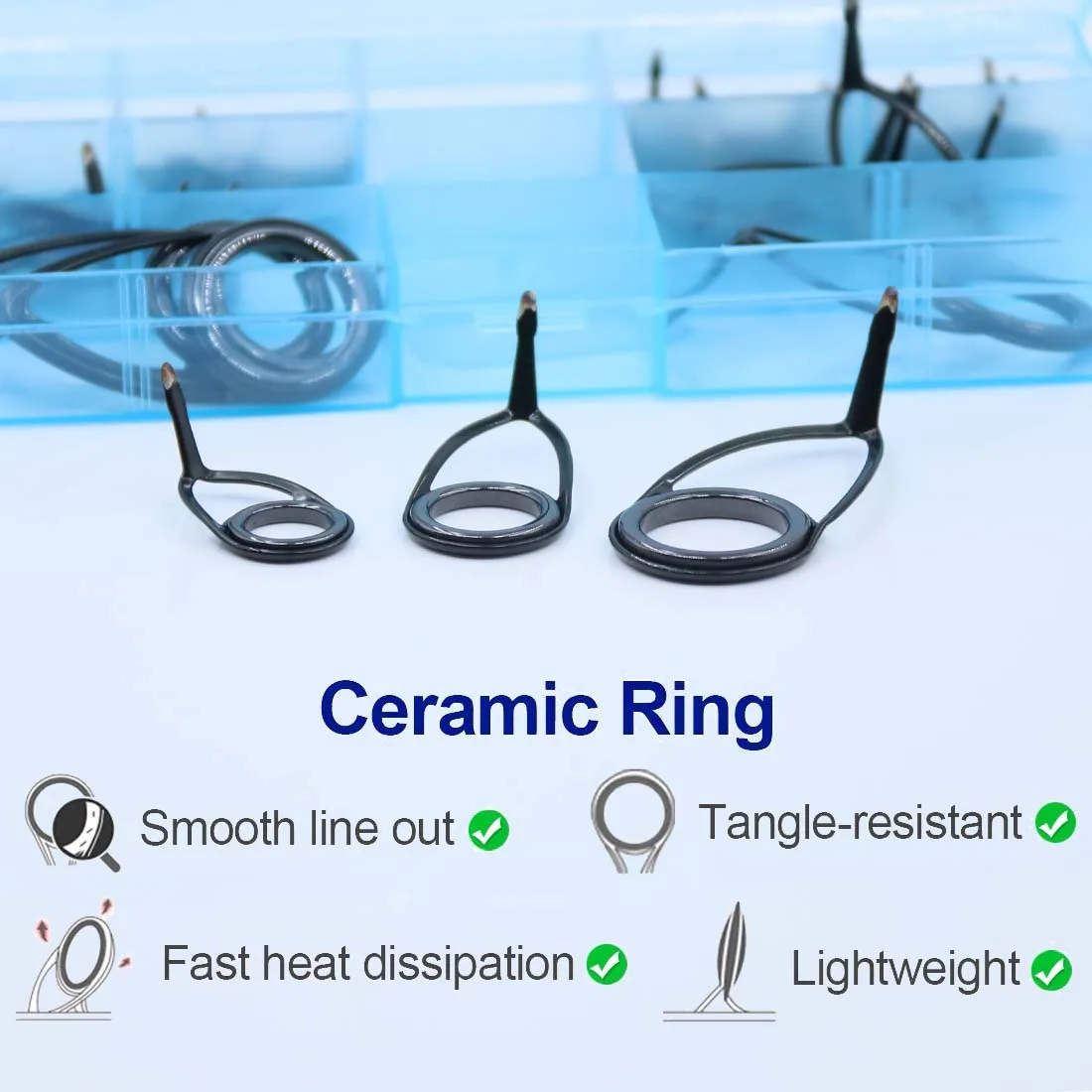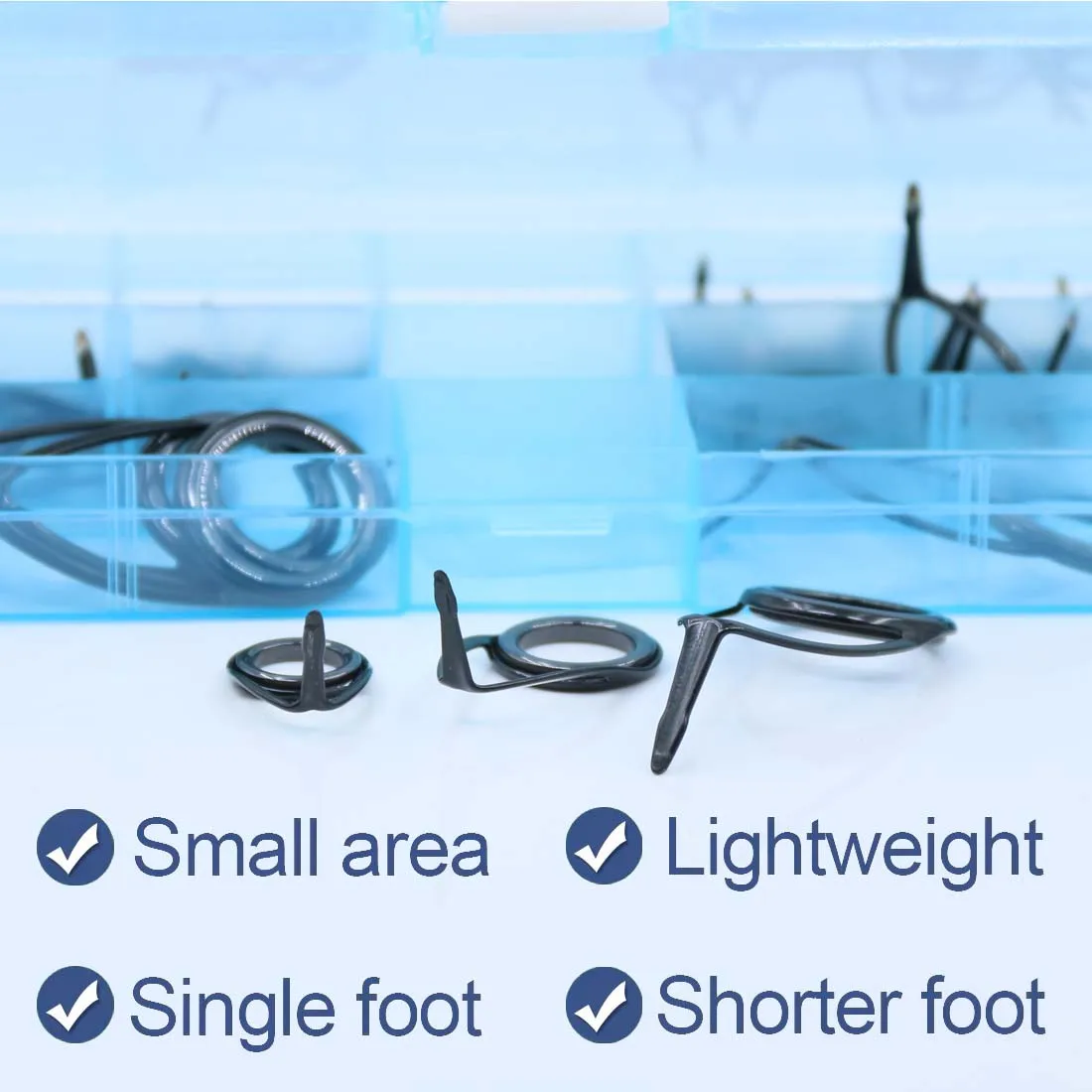 Single foot guides weigh less and are more sensitive. These guides are used most often on spinning rods. Though originally used on medium to light spinning rods technology has facilitated the construction of heavier duty spinning rods and correspondingly single foot guides to accommodate them.Our Single foot guides to fit basically all your fishing rods.