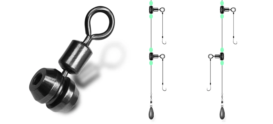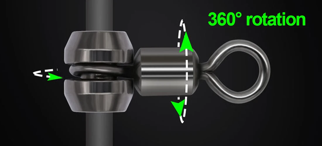 El eslabón giratorio central puede girar 360 grados, lo que permite que su cebo o señuelo funcione libremente como está previsto, lo que equivale a una mejor presentación y, por lo tanto, desencadena más golpes al tiempo que evita giros y enredos de línea.