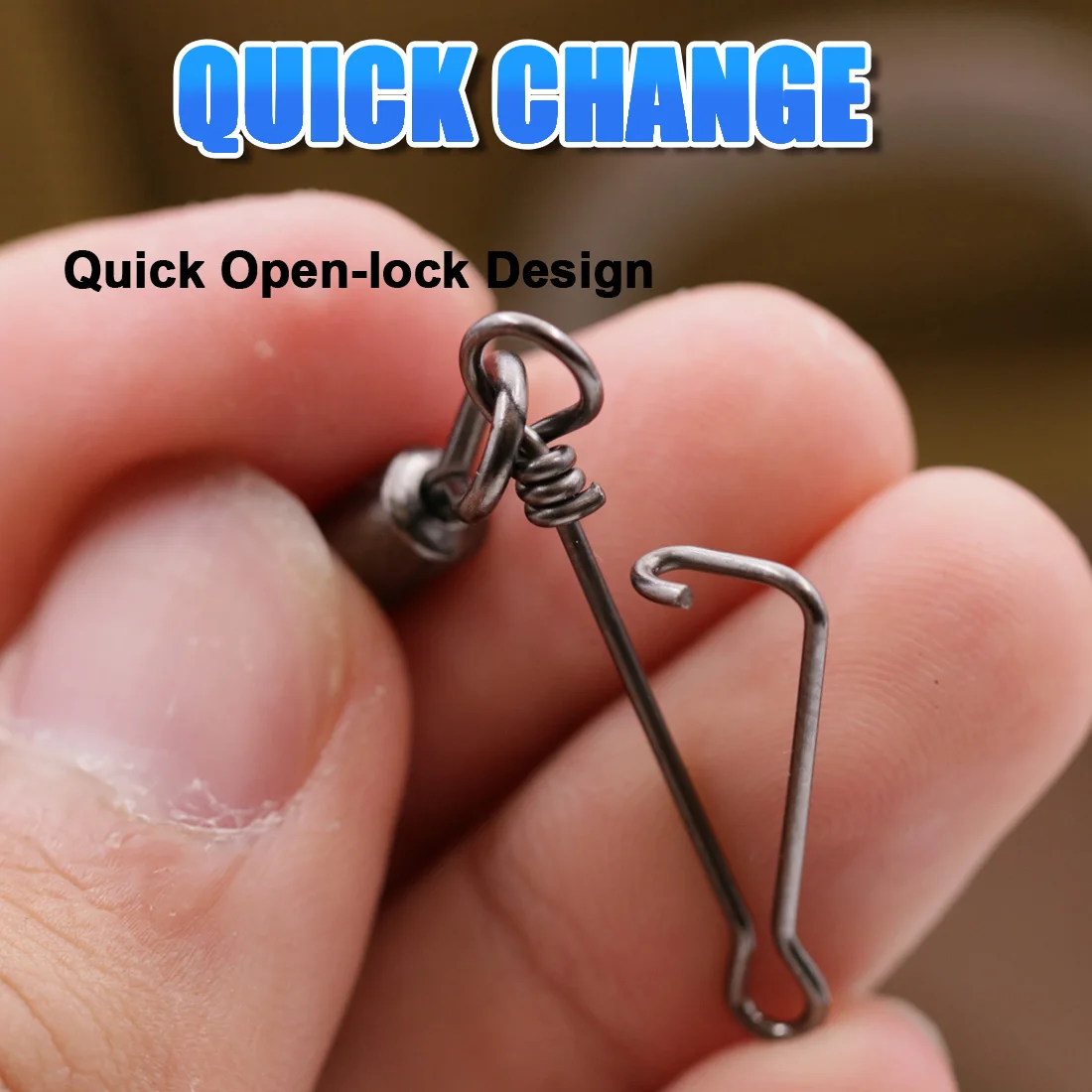 Cierre a presión: giro a presión de pesca con bloqueo rápido y desbloqueo, cambie los señuelos de pesca y los líderes rápidamente.Anillo de soldadura sólido conectado suavemente con hilo de pescar.