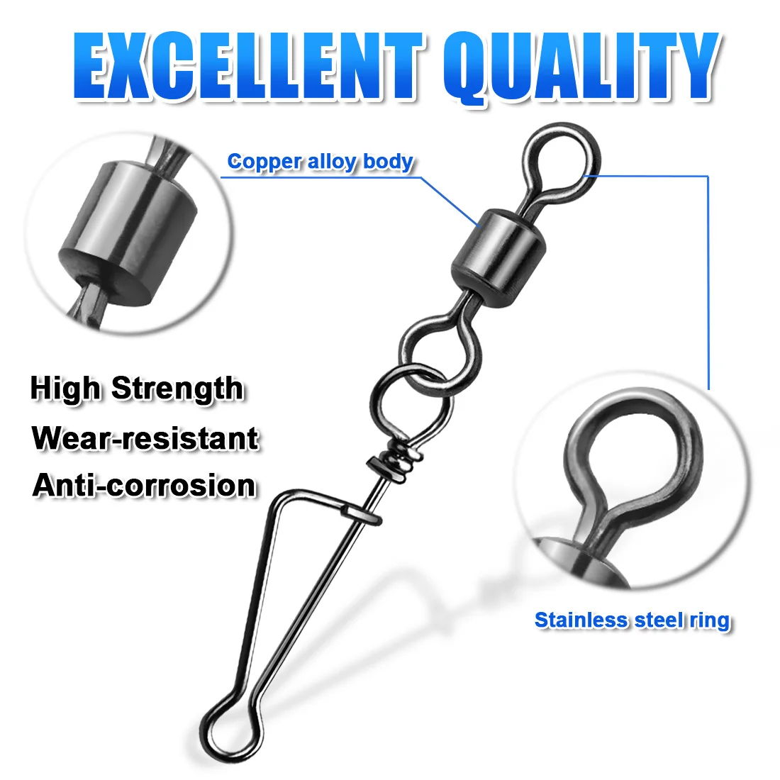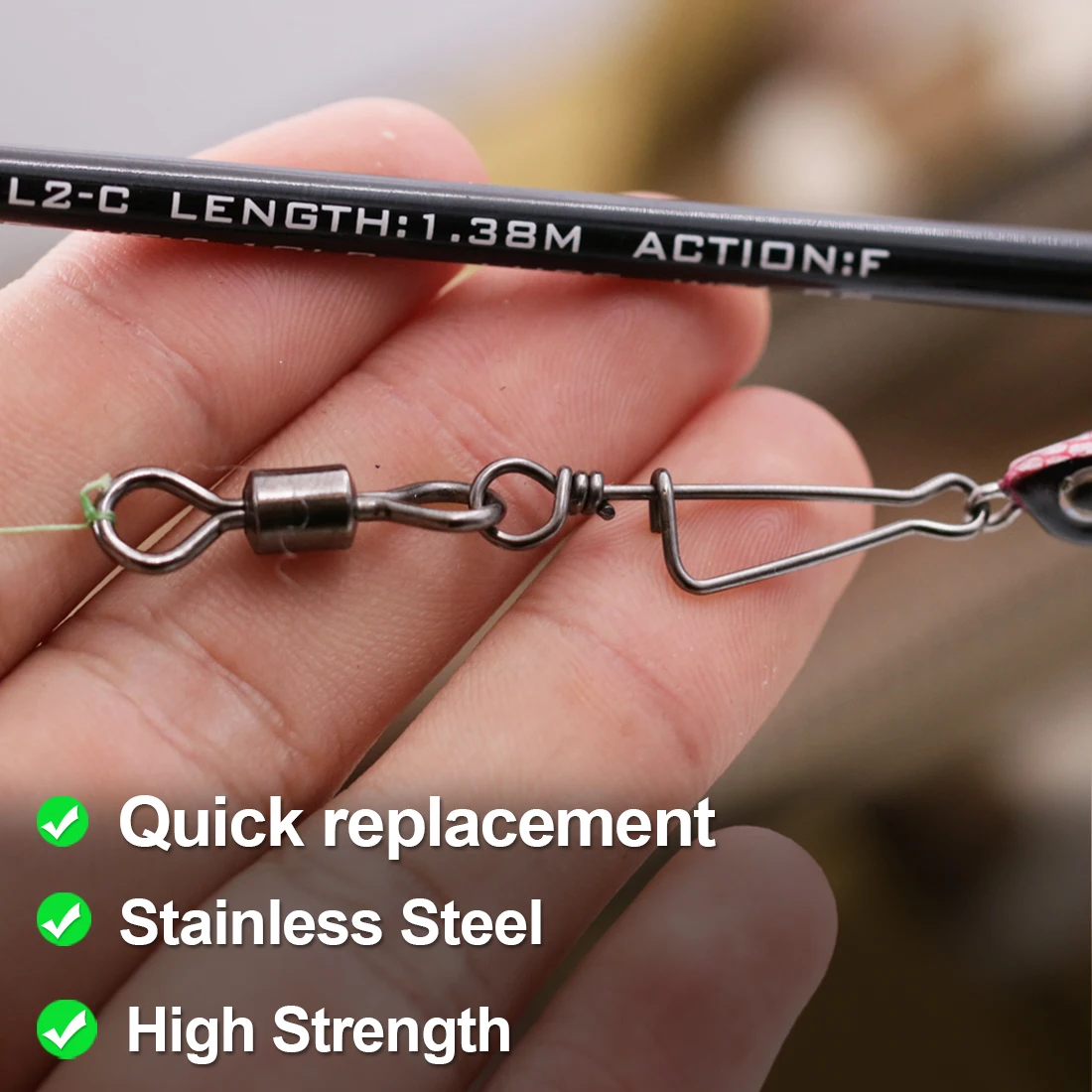 Cierre a presión: giro a presión de pesca con bloqueo rápido y desbloqueo, cambie los señuelos de pesca y los líderes rápidamente.Anillo de soldadura sólido conectado suavemente con hilo de pescar.