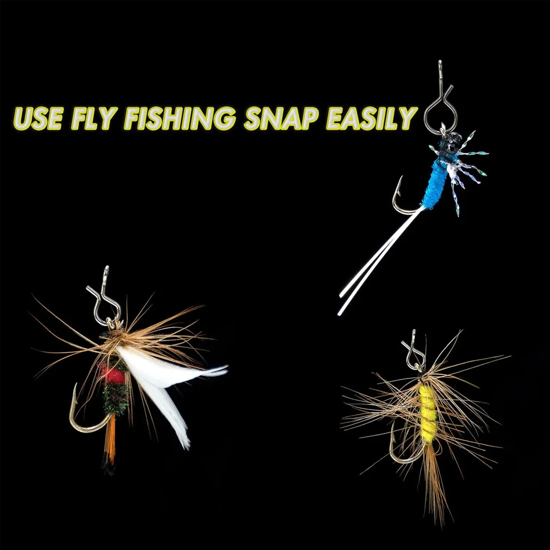 Diseño único: el diseño único en forma de arco garantiza que la mosca cuelgue en el mosquetón de manera estable.El Fly Fishing Snap no se deformará fácilmente y es duradero, lo que garantiza que sus peces no se escapen fácilmente.
