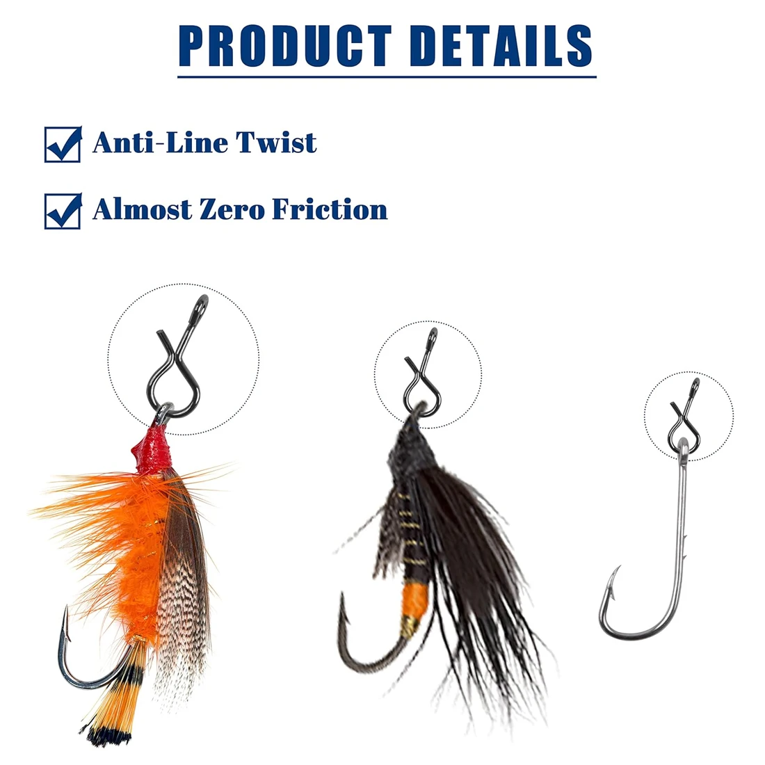 Cambio rápido y fácil: el broche sin nudos es adecuado para colgar señuelos, anzuelos y otras herramientas de aparejos terminales de pesca, proporciona moscas o cambios de señuelos rápidos, fáciles y seguros en solo unos segundos, ahorrándole tiempo y energía.