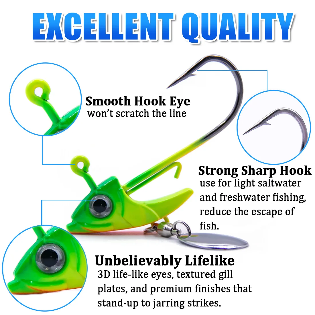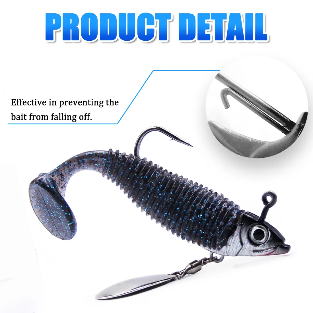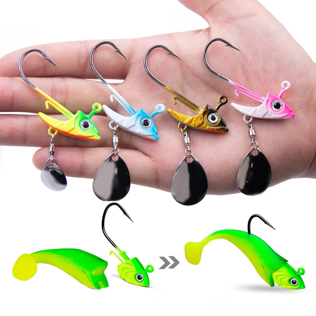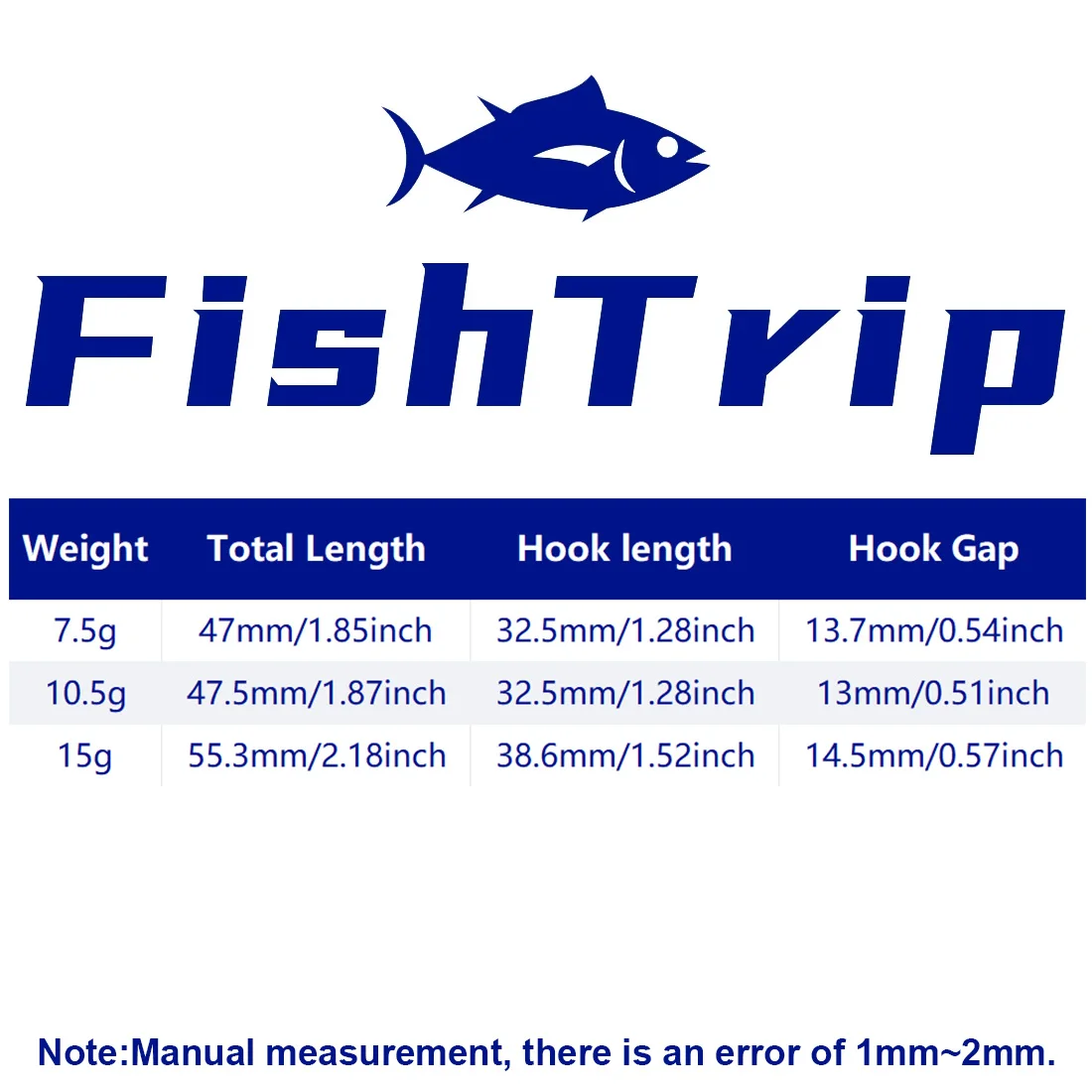 FishTrip Pesca Swimbait Jig Head Hook 7,5 ~ 15g Triangular Jig Head para señuelo de gusano suave con hoja giratoria para lubina trucha salmón