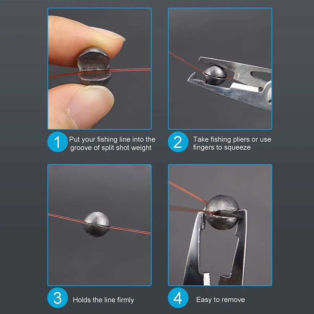 FishTrip Split Shot, plomo de peso para pesca, 50 Uds., plomos redondos extraíbles de plomo para pesca, aparejos de pesca de agua dulce y salada