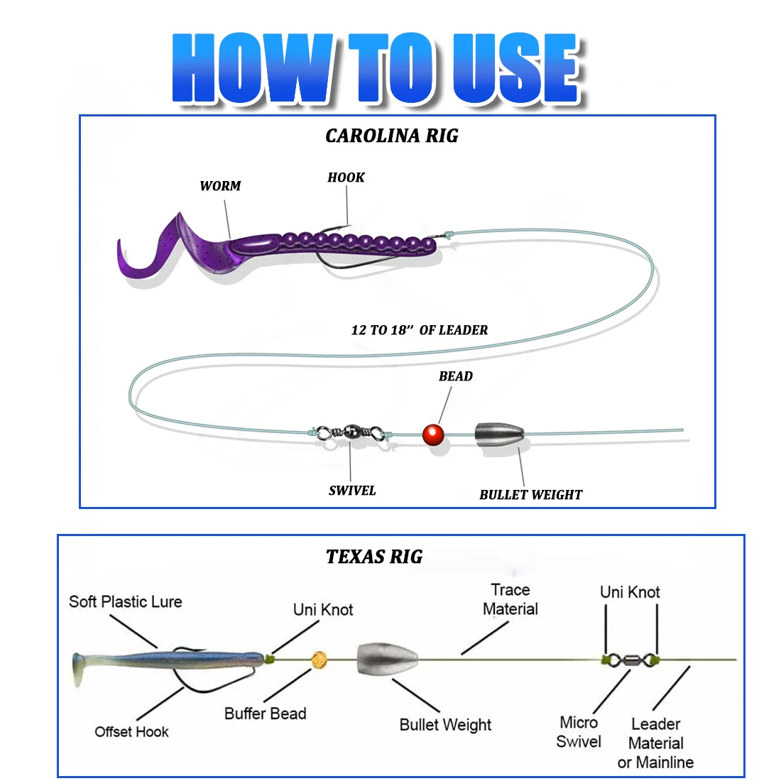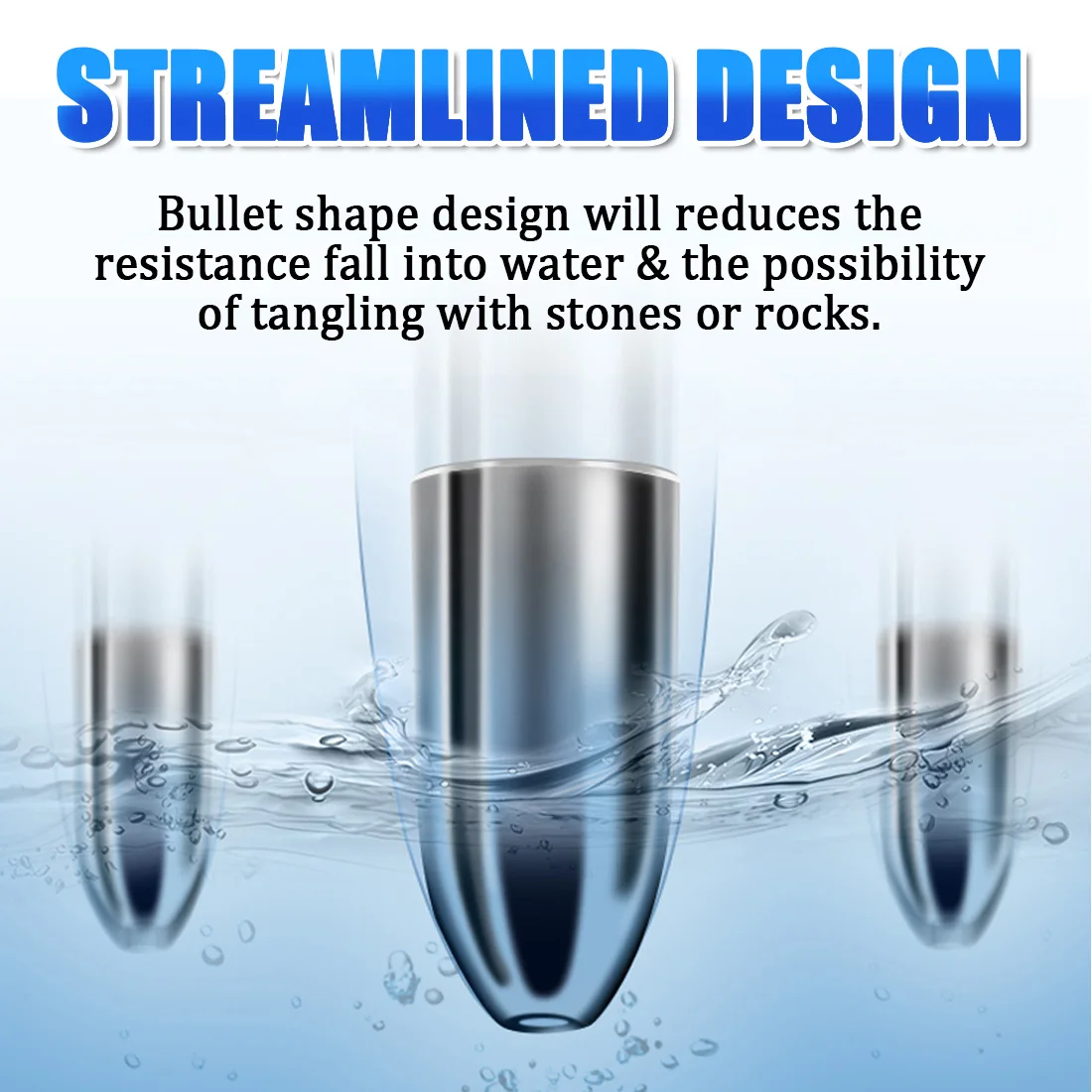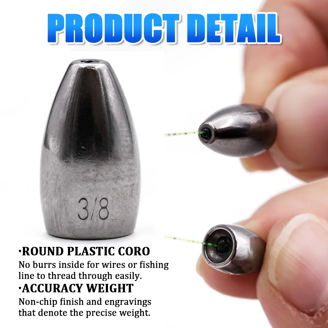 Las plomadas de pesca tipo bala se pueden utilizar como pesas deslizantes en varias configuraciones de aparejo.Se puede utilizar con anzuelos desplazados EWG, cebo blando de gusano de plástico y cuentas de pesca.Se puede convertir en aparejos de Texas, Carolina y otros aparejos muy prácticos.