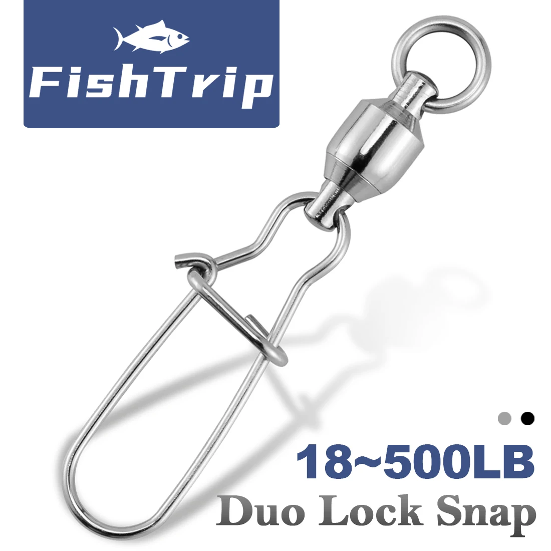 Los giratorios de pesca con doble cerradura son producción FishTrip.Los giratorios de barril de acero inoxidable contienen cuerpo de cobre con anillos sólidos y cierres de presión dúo de acero inoxidable.
