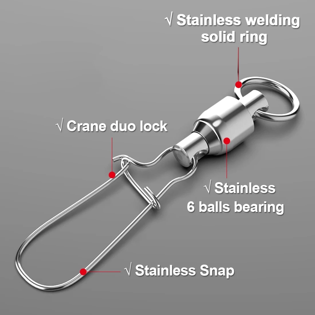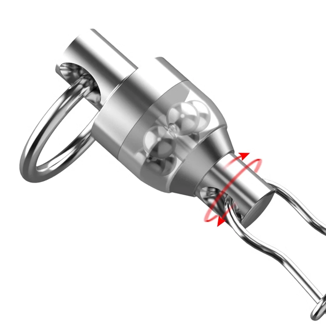Los giratorios del rodamiento de bolas del hilo de pescar están firmemente bloqueados y equilibrarán la presión externa cuando se someten a una potente fuerza de tracción.El mosquetón de pesca con cierre dúo soporta más presión que otros giratorios.