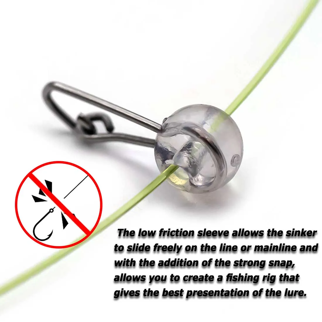 The low friction sleeve allows the sinker to slide freely on the line or mainline and with the addition of the strong snap, allows you to create a fishing rig that gives the best presentation of the lure.