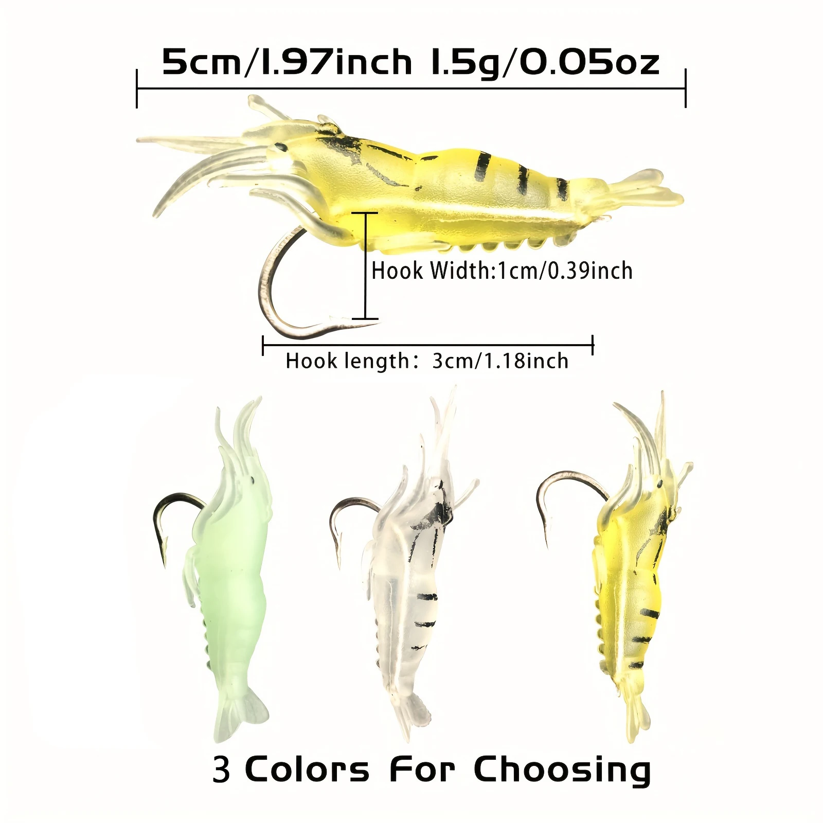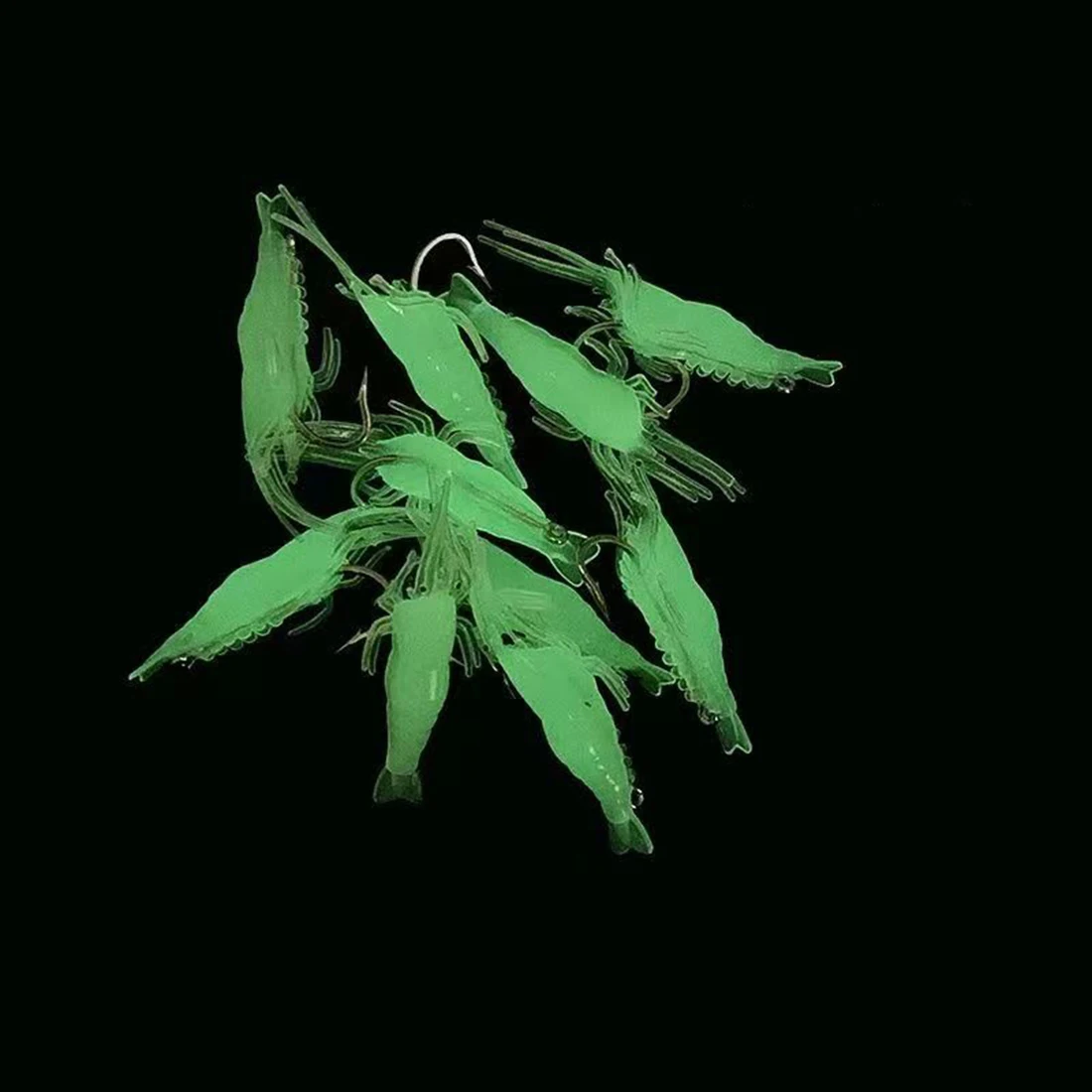 FishTrip señuelo de camarón suave 10 Uds cebo de pesca de camarón suave luminoso aparejos de pesca de camarón de silicona para salmón de trucha lubina de agua dulce