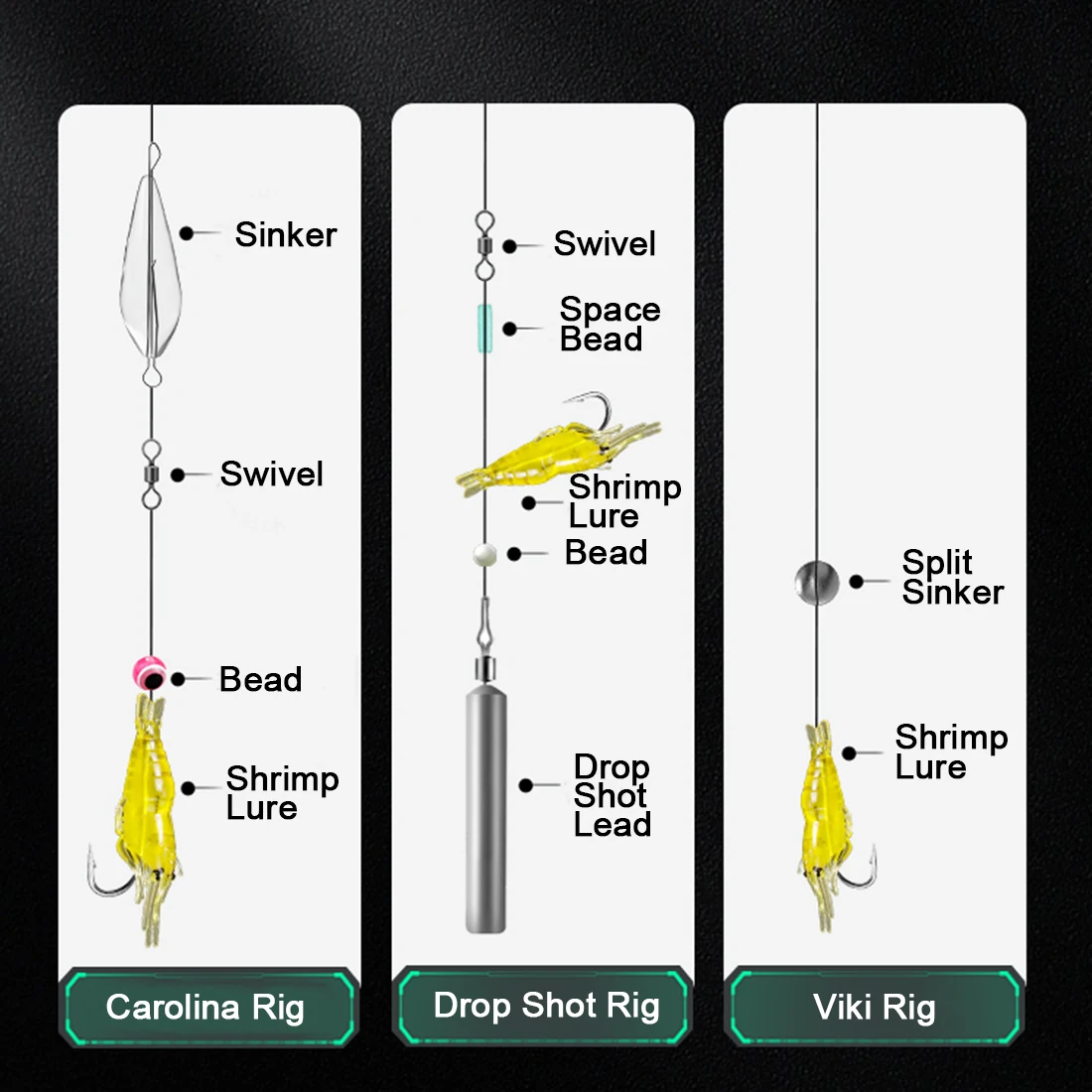 La apariencia de los señuelos de camarones es realista y ofrece acciones de natación tan realistas en el agua que los peces no soportan la tentación de tenerlo.