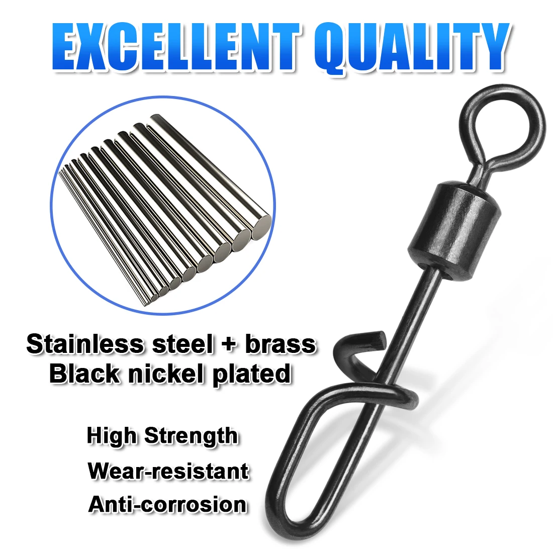 Los giratorios de agua salada del sacacorchos son pequeños y livianos, se pueden conectar directamente al rodillo, por lo que no afectará la acción del señuelo en el agua.Y es bastante fácil de usar, puedes cambiar los señuelos en segundos sin necesidad de herramientas como alicates.