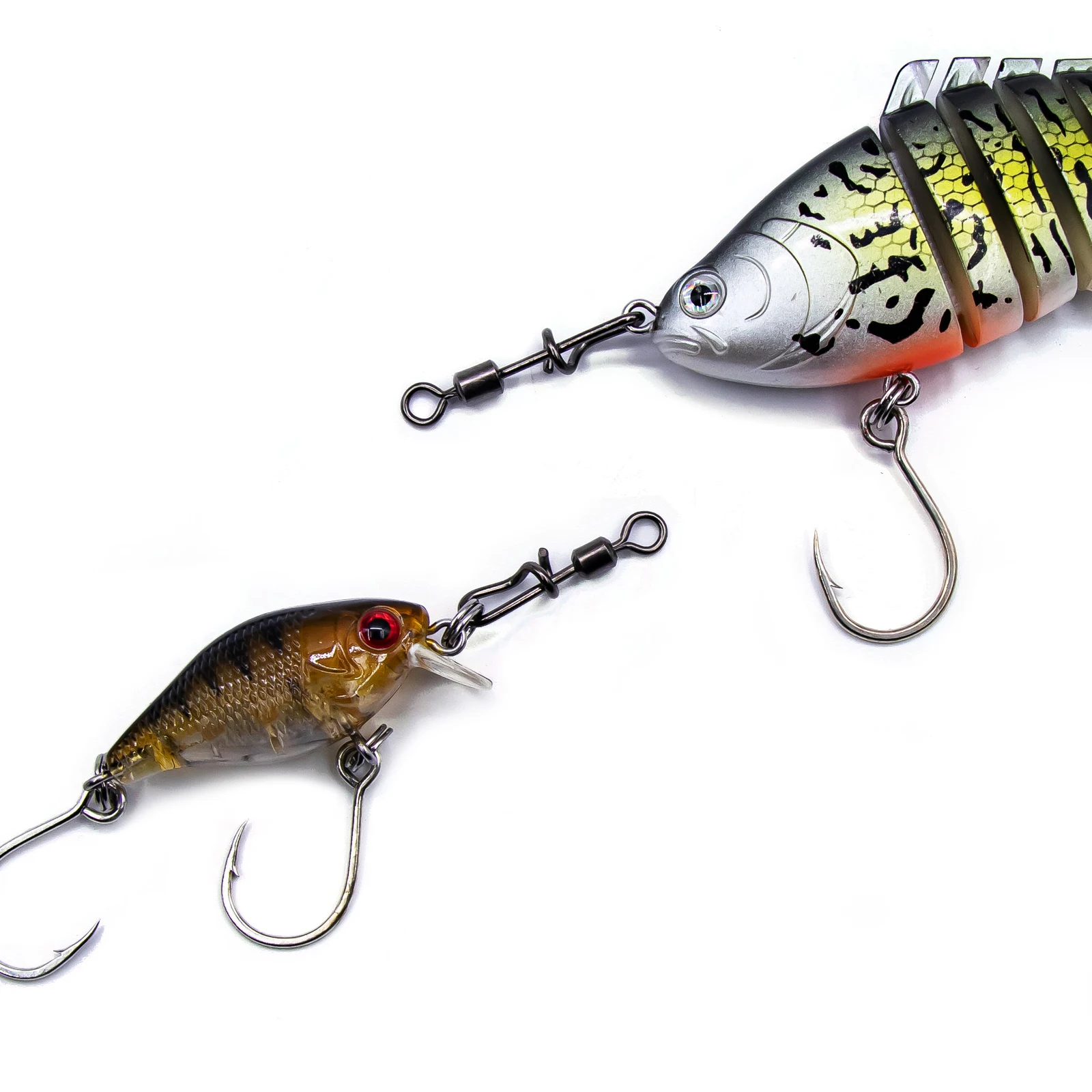 hace que la pesca gire más pequeña y liviana. La rotación sin restricciones de alta velocidad del giratorio que evita que la plataforma del cebo se tuerza, permite que el cebo presente acciones más naturales en el agua y reduce la fuerza de arrastre de los peces para proteger los aparejos de pesca. La rotación libre e independiente hace que los señuelos de pesca sean más atractivos.