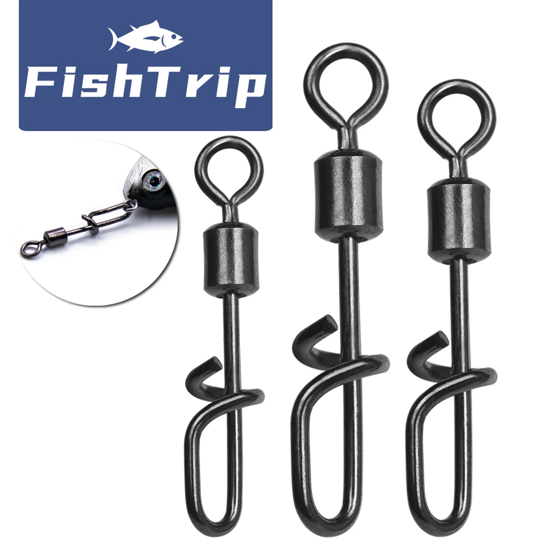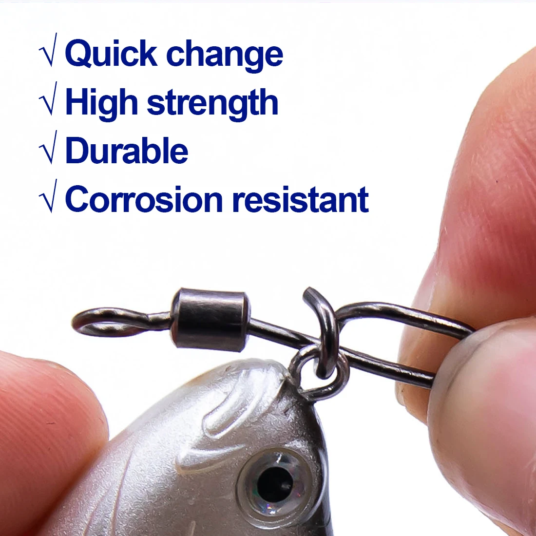 FishTrip Pesca Giratoria Snap T-forma Snap Barril Giratorio Señuelo de pesca de acero inoxidable y accesorios de conector de anillo Hebilla de pesca