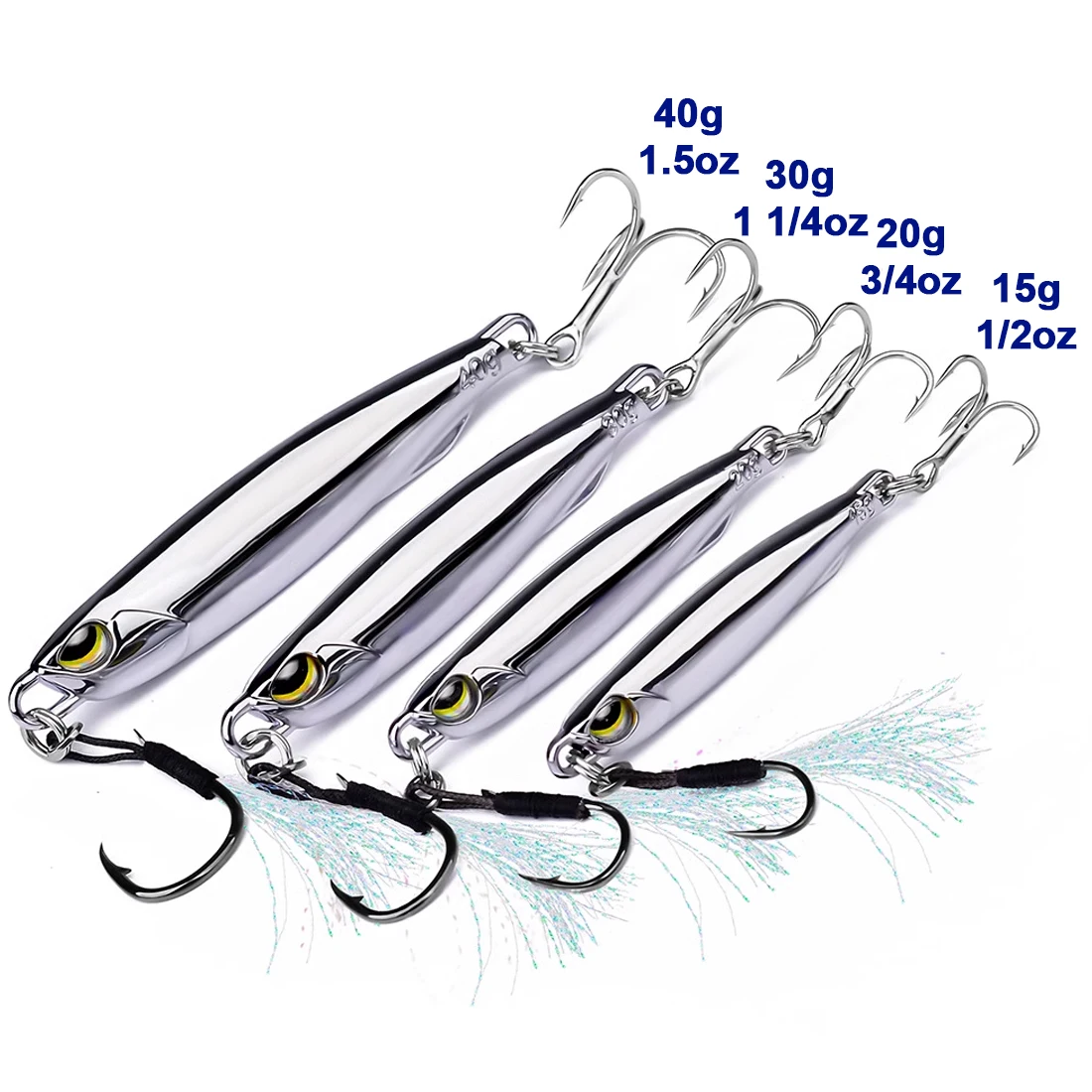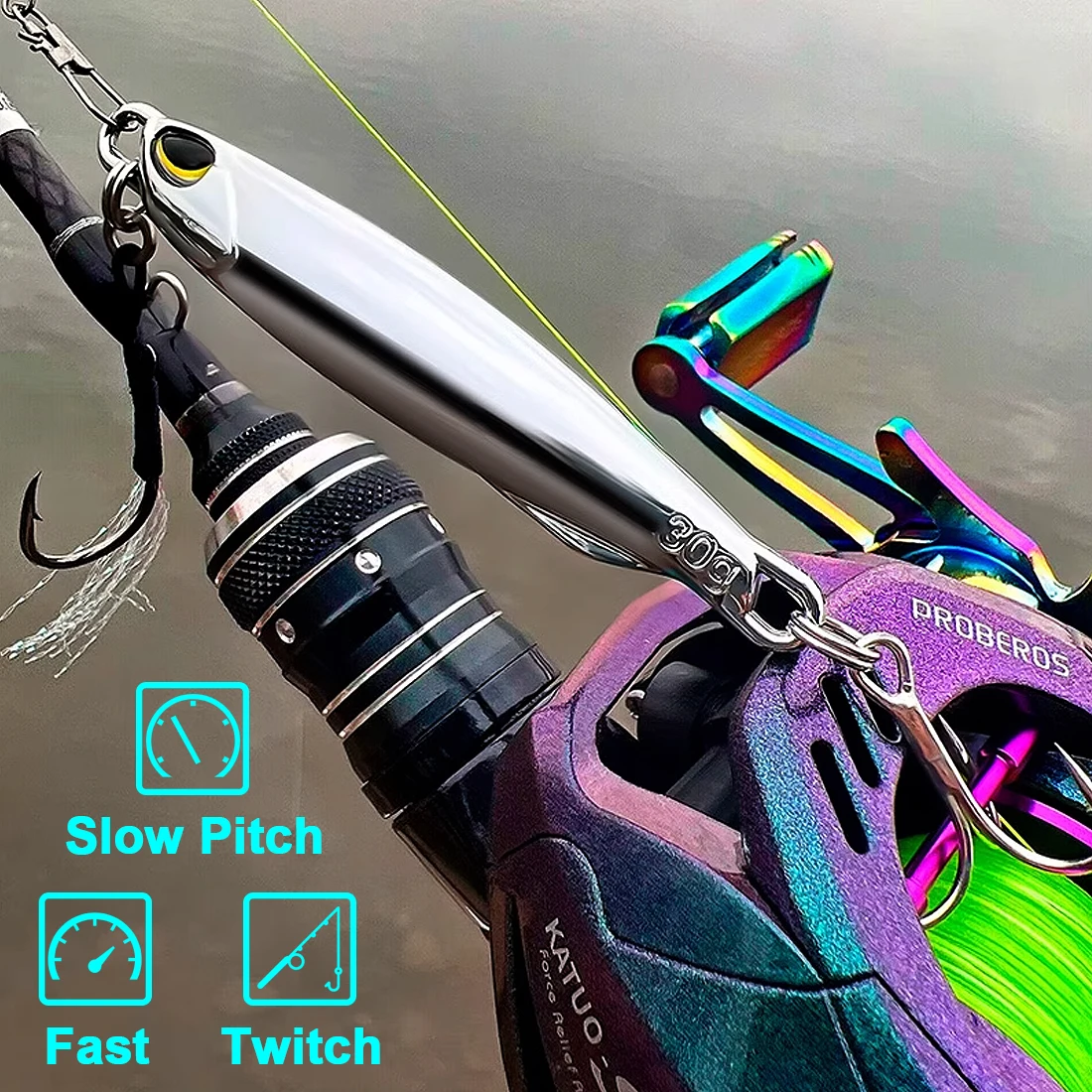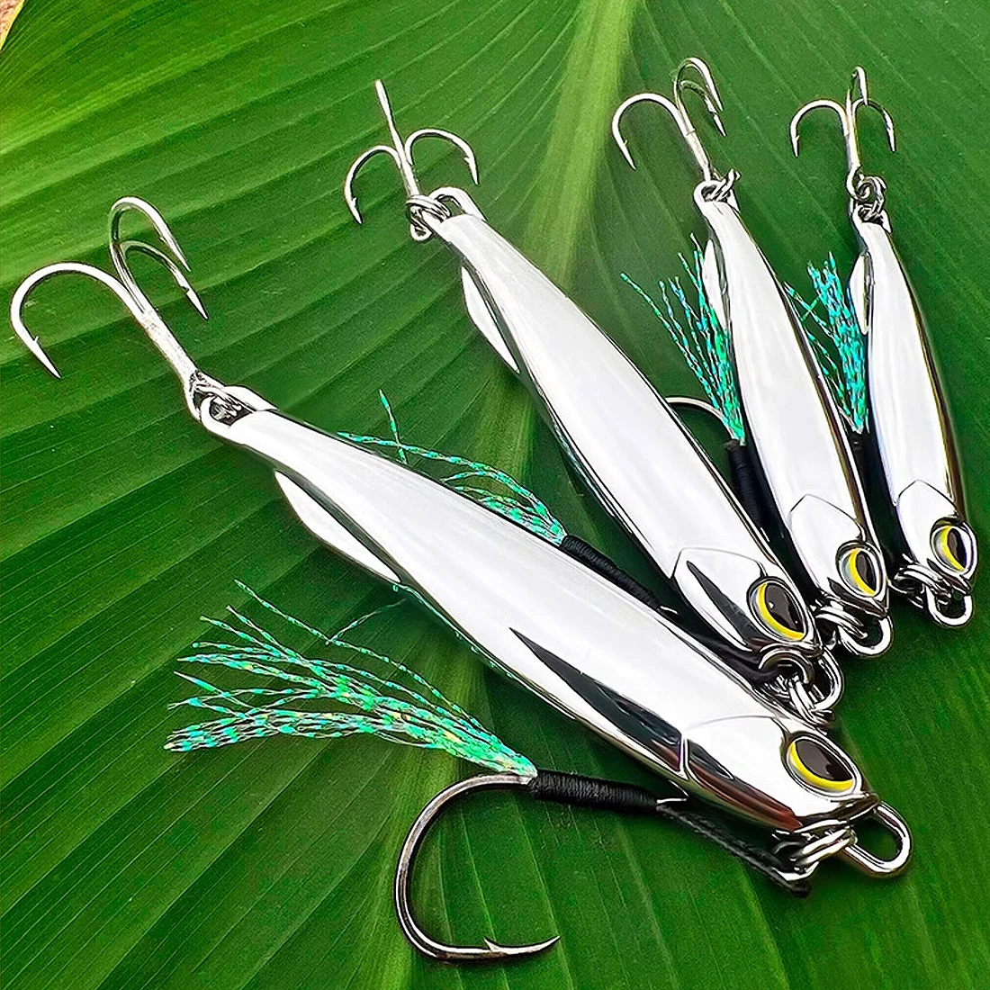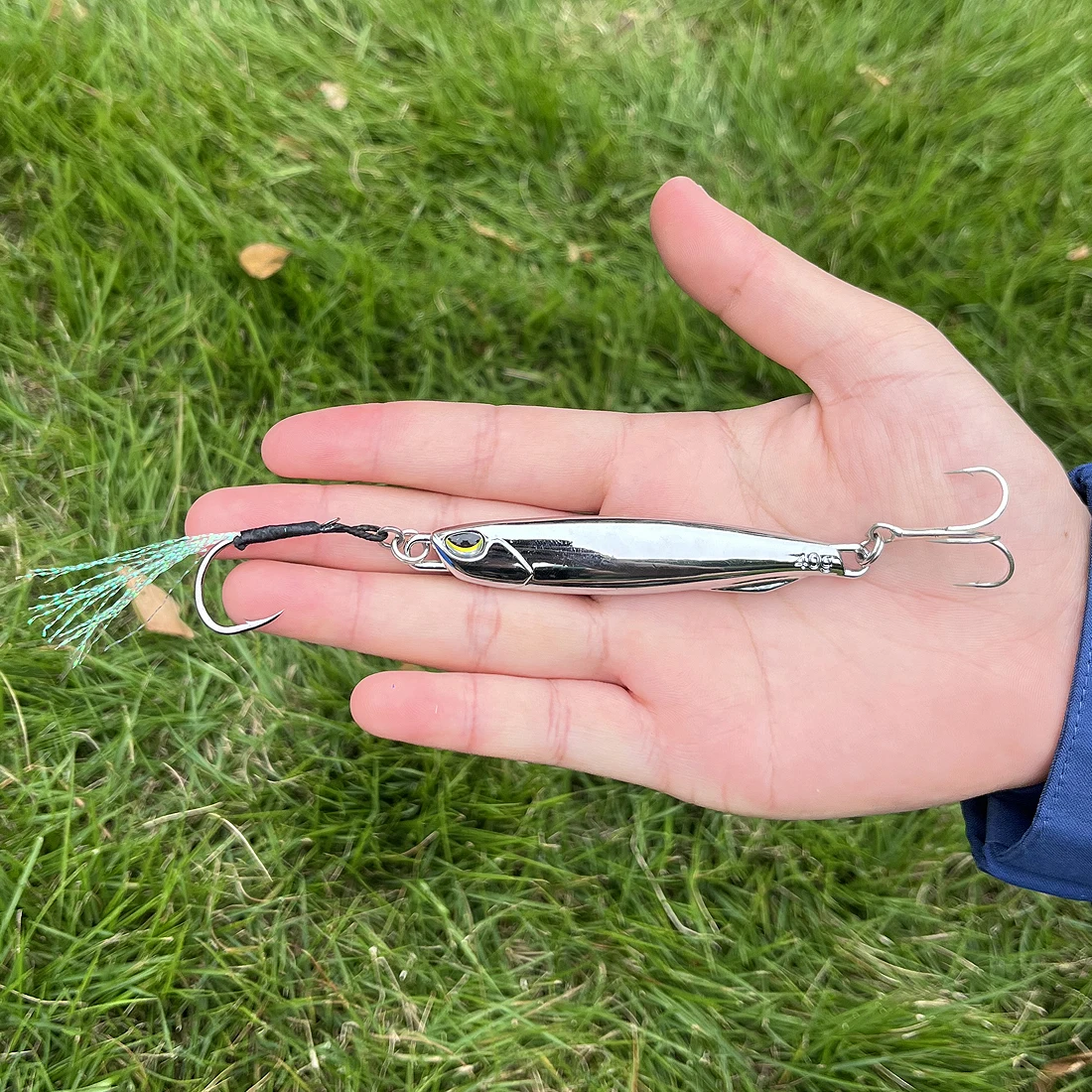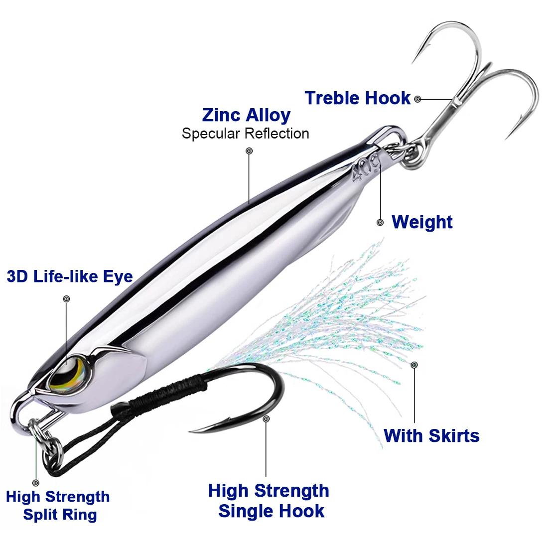 Señuelo de pesca, señuelo de Jigging, señuelos de hundimiento de agua salada, cebo Artificial, plantilla de aleación de Zinc, anzuelo de pesca de alta resistencia con faldasViaje de peces