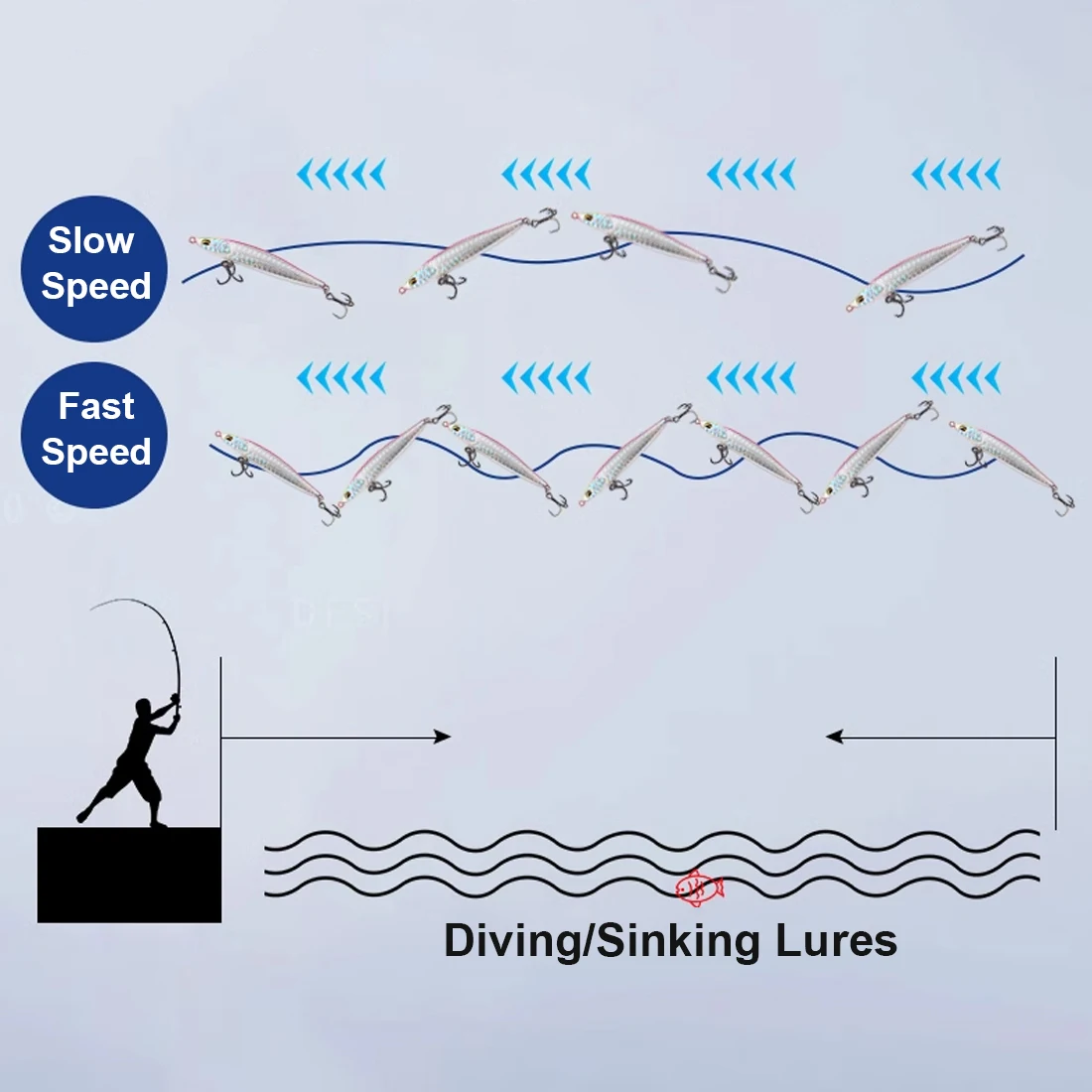 Como su nombre indica, estos señuelos funcionan excelentemente en aguas profundas. Sin embargo, debe comprender cómo usarlos de manera efectiva para una captura de Corona. Cuanto más rápido lo recuperes, más profundo se hunde.