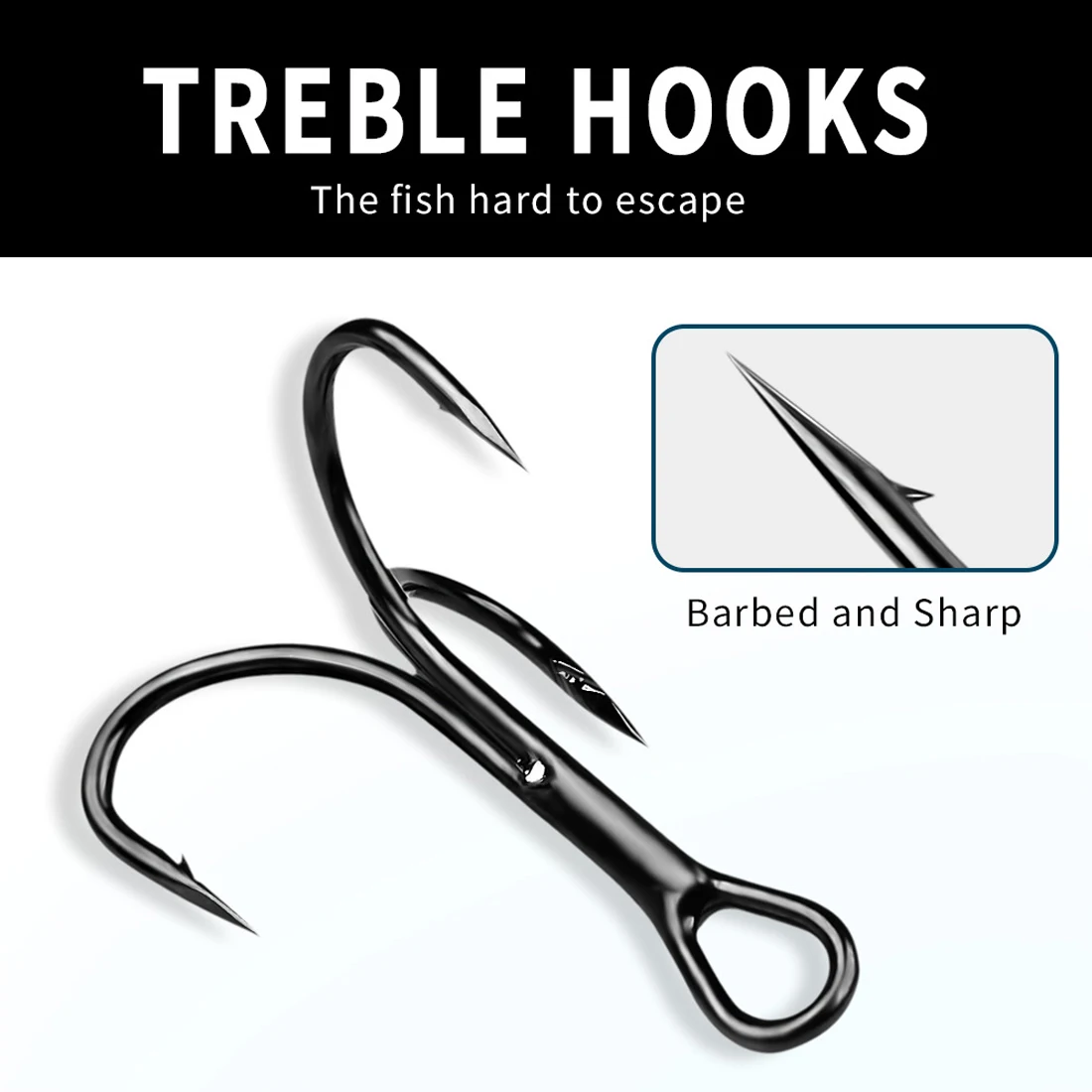 Todos los cofres de cebo están equipados con triples anzuelos en la cola, son súper afilados y tienen un fuerte poder de penetración, lo que facilita la captura de peces.