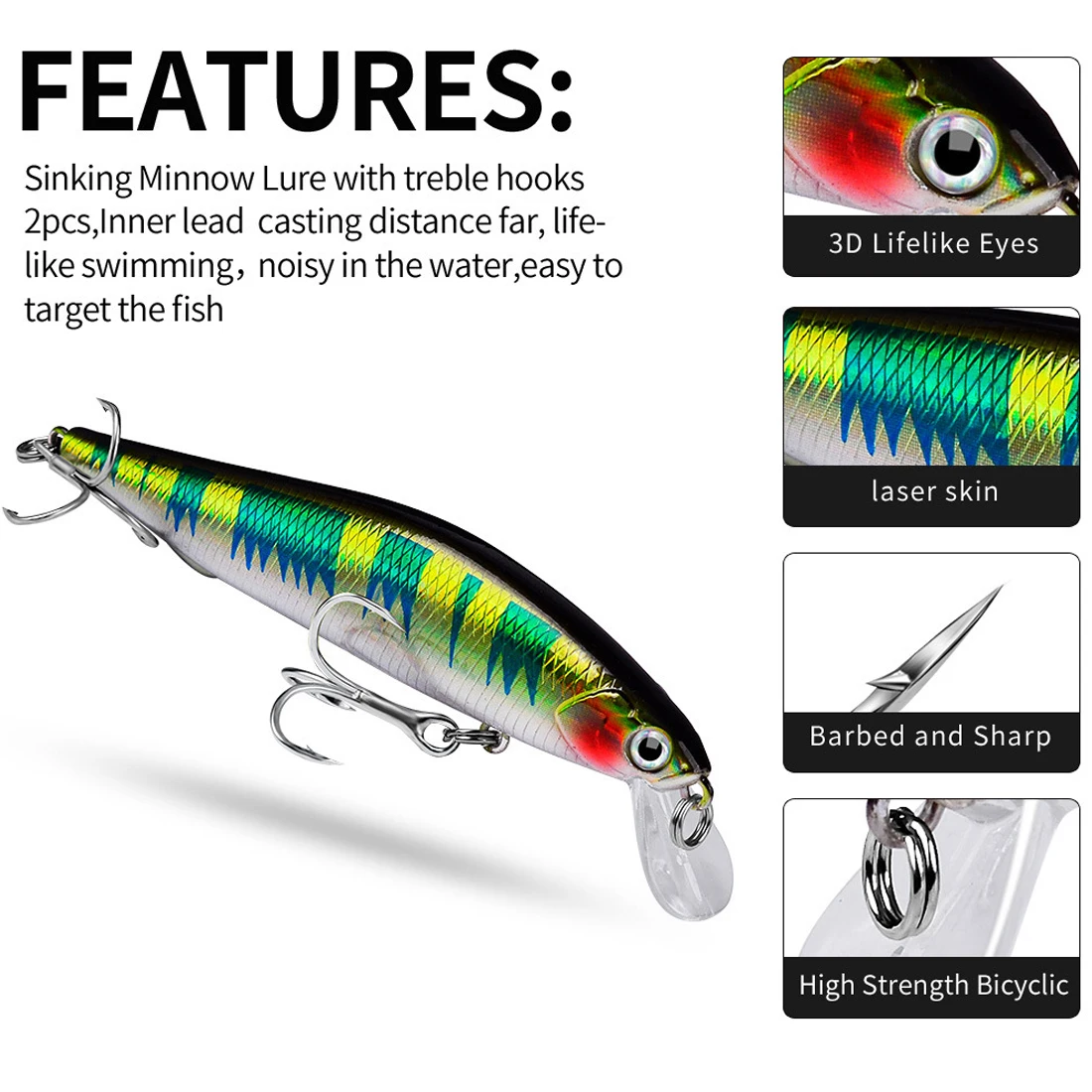 Los ojos 3D Life similares con el cuerpo impreso con láser que atrae a los peces brindan una excelente apariencia de los señuelos de pesca. Simule el estilo de natación de un pez real.