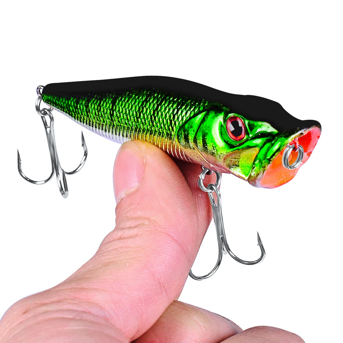 Estos tipos de señuelos se utilizan en la superficie del agua. Imitan un cebo herido, aunque también pueden imitar pájaros y ranas. Tienen un efecto de gorgoteo y hacen ruido para atraer a su pez objetivo. Los depredadores de peces que luchan contra los señuelos de superficie ofrecen la experiencia de pesca más emocionante mientras el pez persigue, lucha y golpea los señuelos.