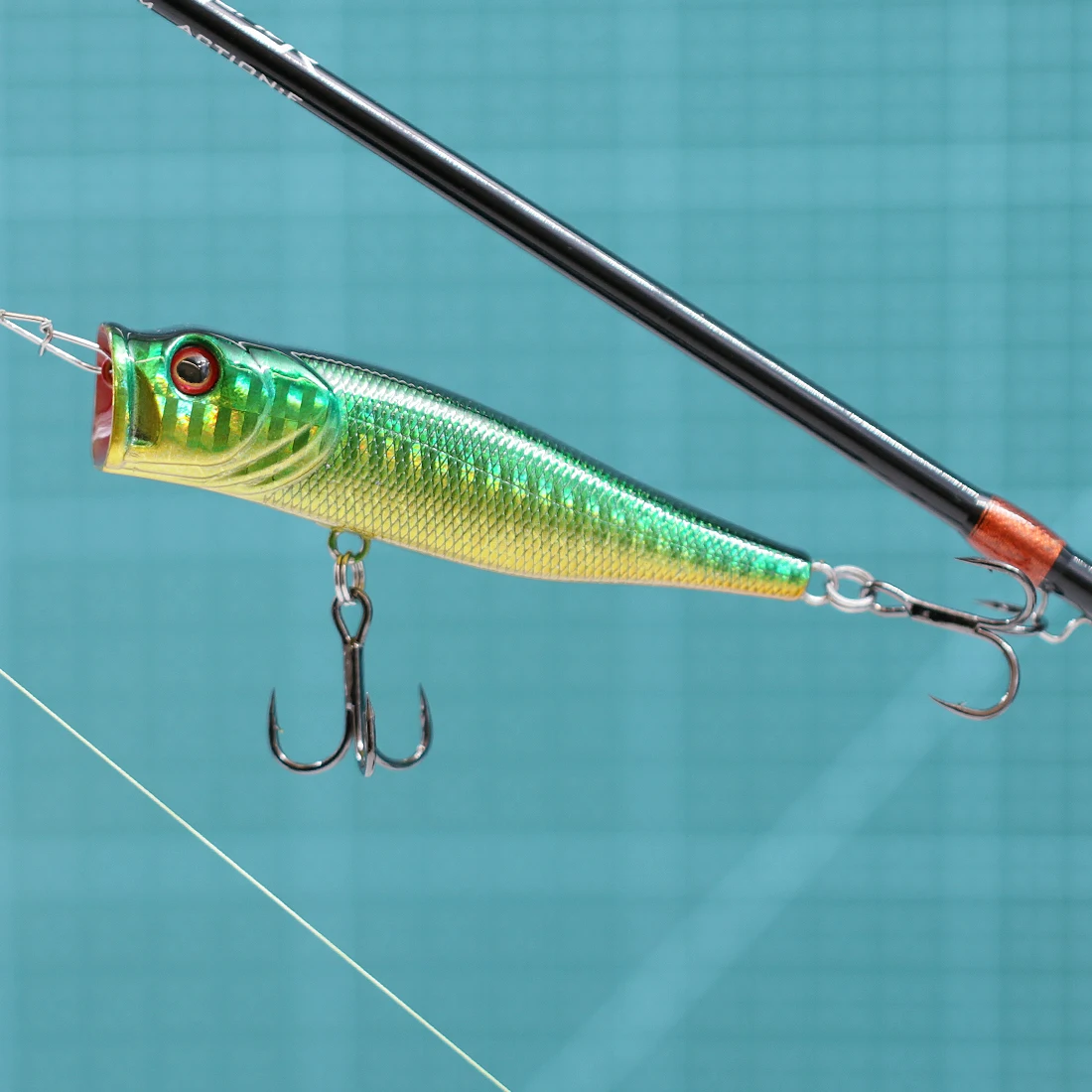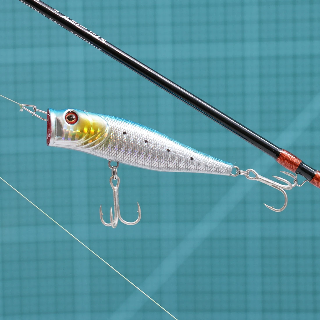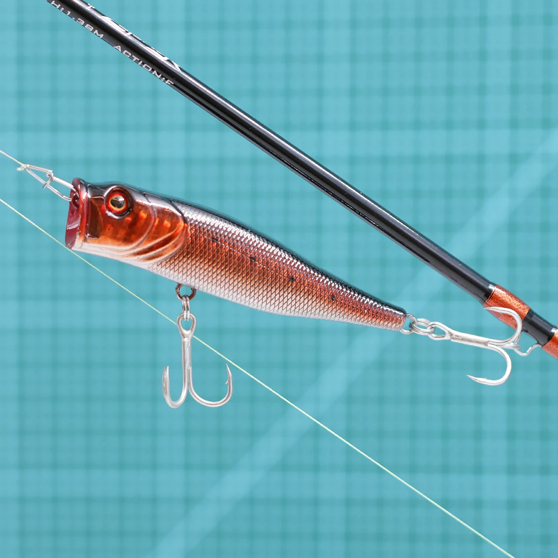 El Popper de forma clásica con un nuevo diseño de boca de copa ofrecerá una acción de estallido mucho más agresiva para provocar más picaduras. La boca de la copa y las bolas de acero generarán un fuerte gorgoteo y traqueteo para llamar a los peces desde la profundidad.