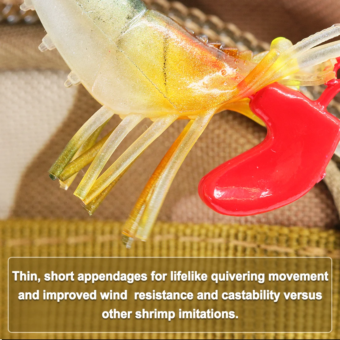 Apéndices delgados y cortos para un movimiento tembloroso realista y una mejor resistencia al viento y colabilidad frente a otras imitaciones de camarones.