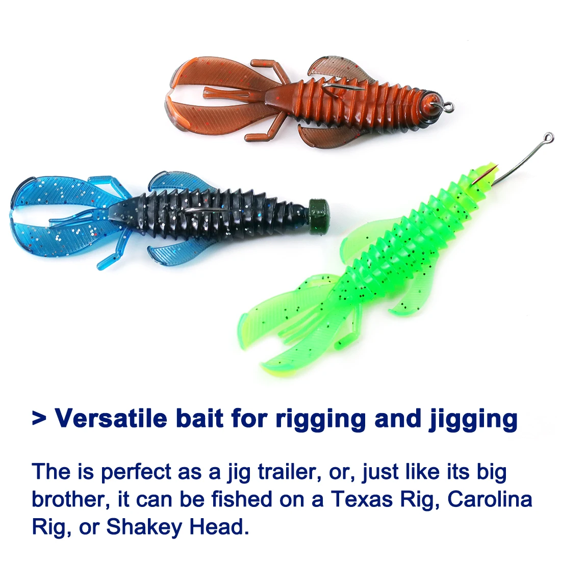 With its prominent ribbing, wide-body profile, lively legs, and large pincers, the creates maximum disturbance as it moves through the water, and its cooked-in scent and taste are proven to induce more quality strikes.