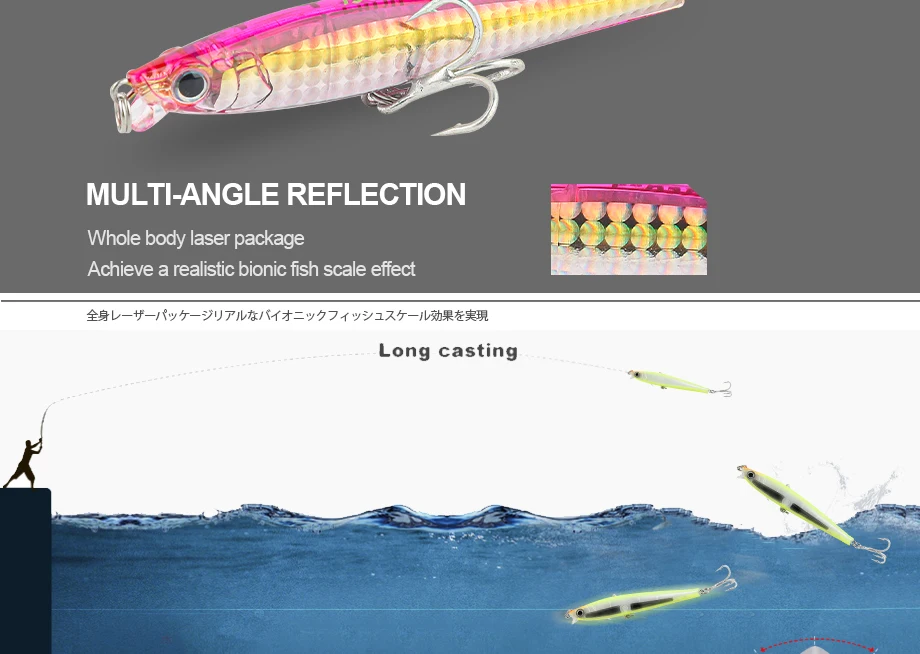 Bait is equipped with imported high carbon steel hook, double 360 double ring flattening link configuration to strengthen the import hooks.