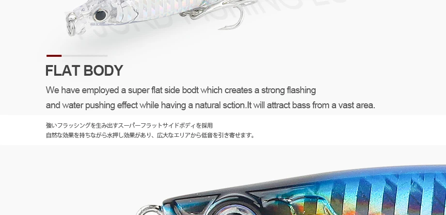 This is Sinking lure, the perfect body curve will make the lure meet smallest resistance even in the sharp water flow.