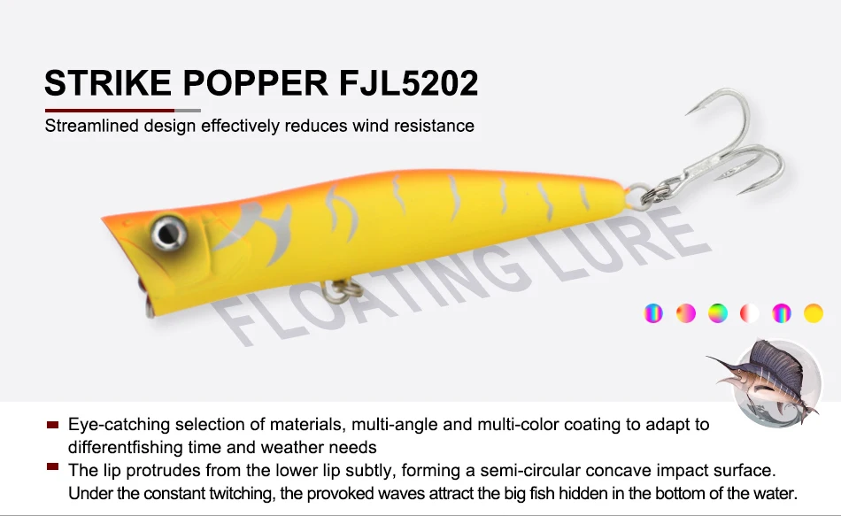 4.Eye-catching selection of materials, multi-angle and multi-color coating to adapt to different fishing time and weather needs